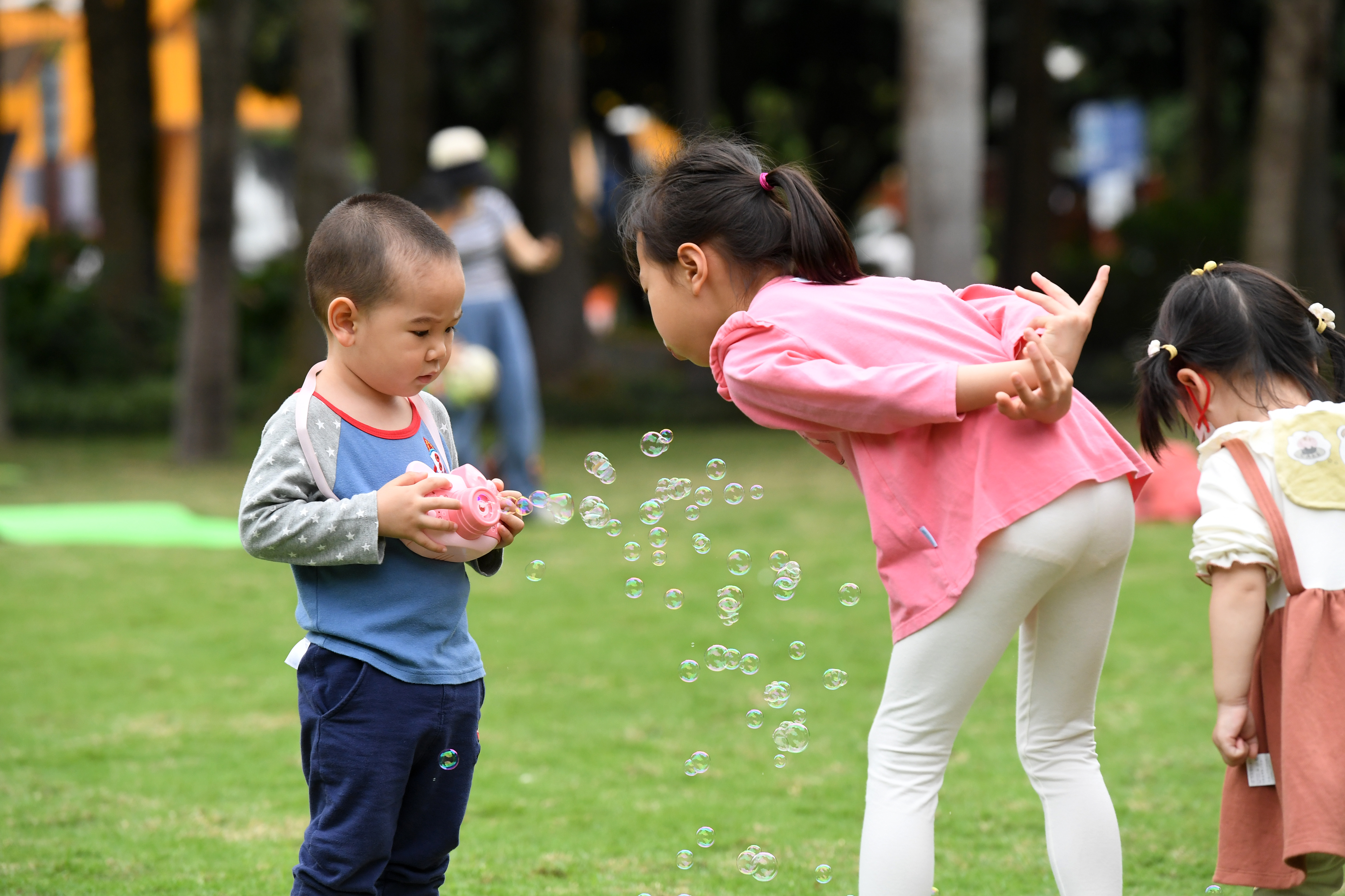 新华社照片,南宁,2022年3月20日 乐享春光 3月20日,小朋友在广西南宁市金花茶公园玩耍。 春分时节,人们在温暖和煦的春风中踏青、赏花,乐享春日美景。 新华社记者 陆波岸 摄