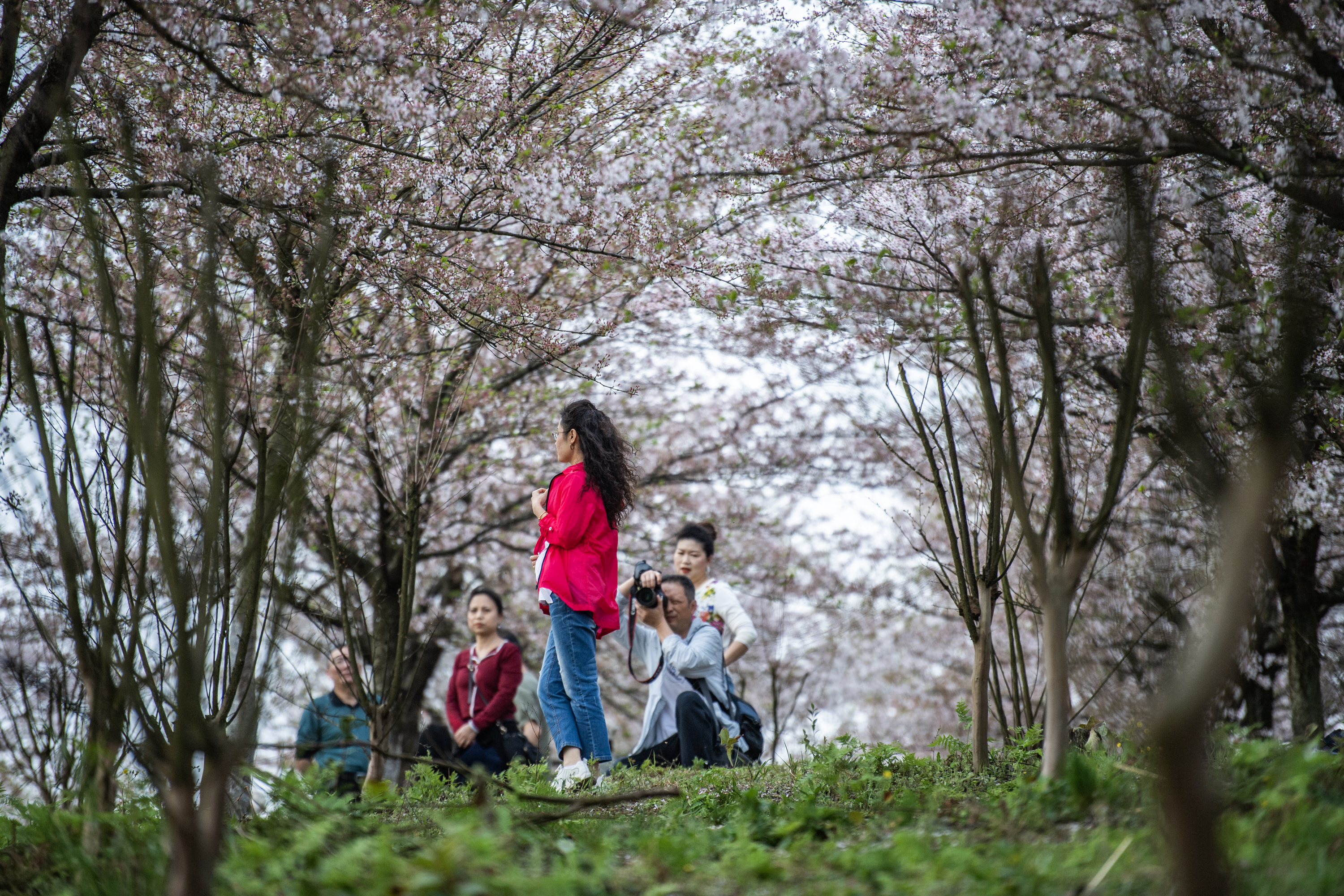 新华社照片,安顺(贵州),2022年3月20日 春分时节享春光 3月20日,游客在贵州省安顺市西秀区黄腊乡樱花园游玩留影。 春分时节,人们在温暖和煦的春风中踏青、赏花,乐享春日美景。 新华社记者 陶亮 摄