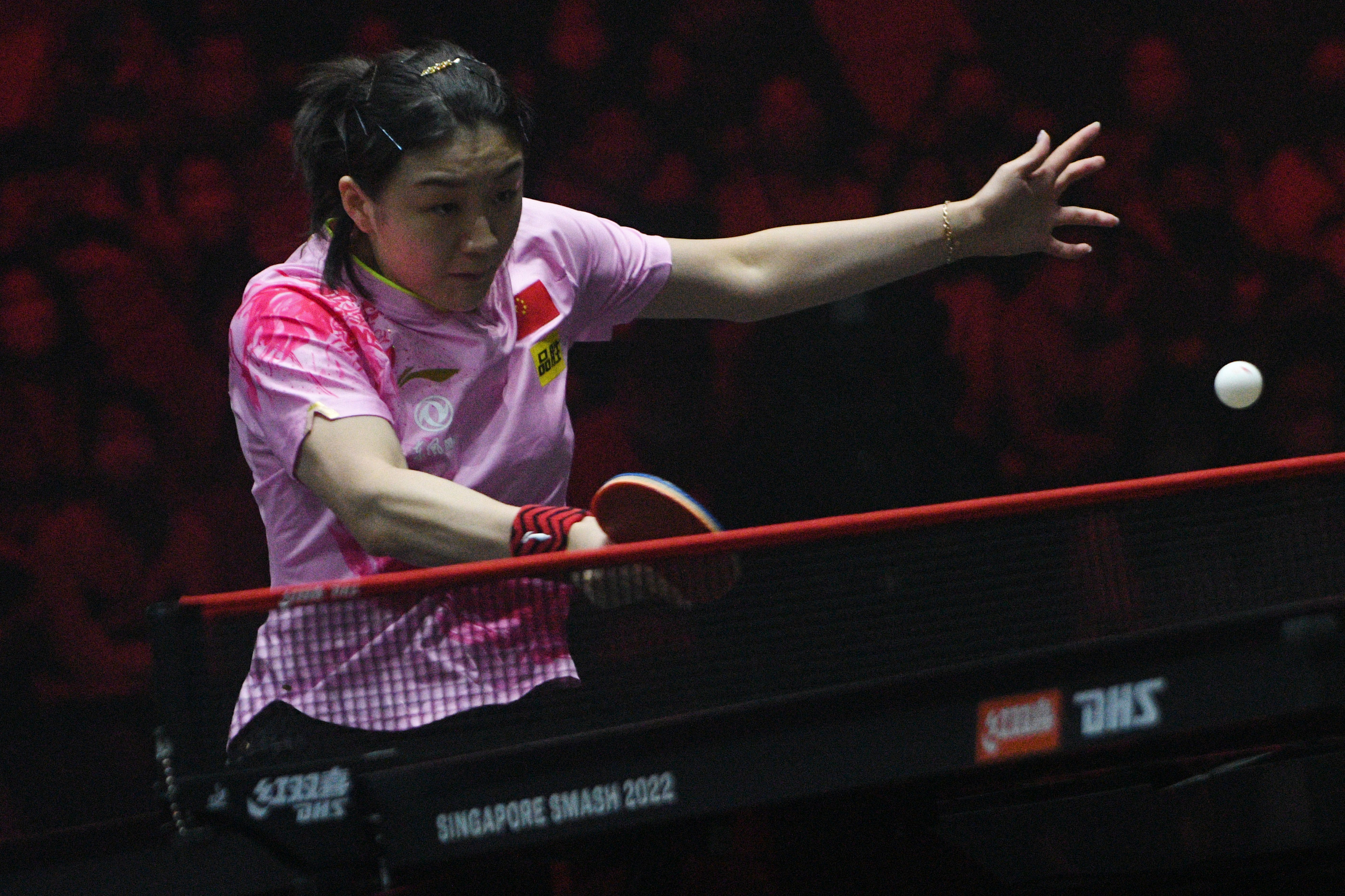 新华社照片,新加坡,2022年3月20日 (体育)(2)乒乓球——WTT新加坡大满贯:陈梦女单夺冠 3月20日,中国选手陈梦在比赛中回球。 当日,在新加坡举行的世界乒乓球职业大联盟(WTT)新加坡大满贯女单决赛中,中国选手陈梦以4比3战胜队友王曼昱,夺得冠军。 新华社发(邓智炜摄)