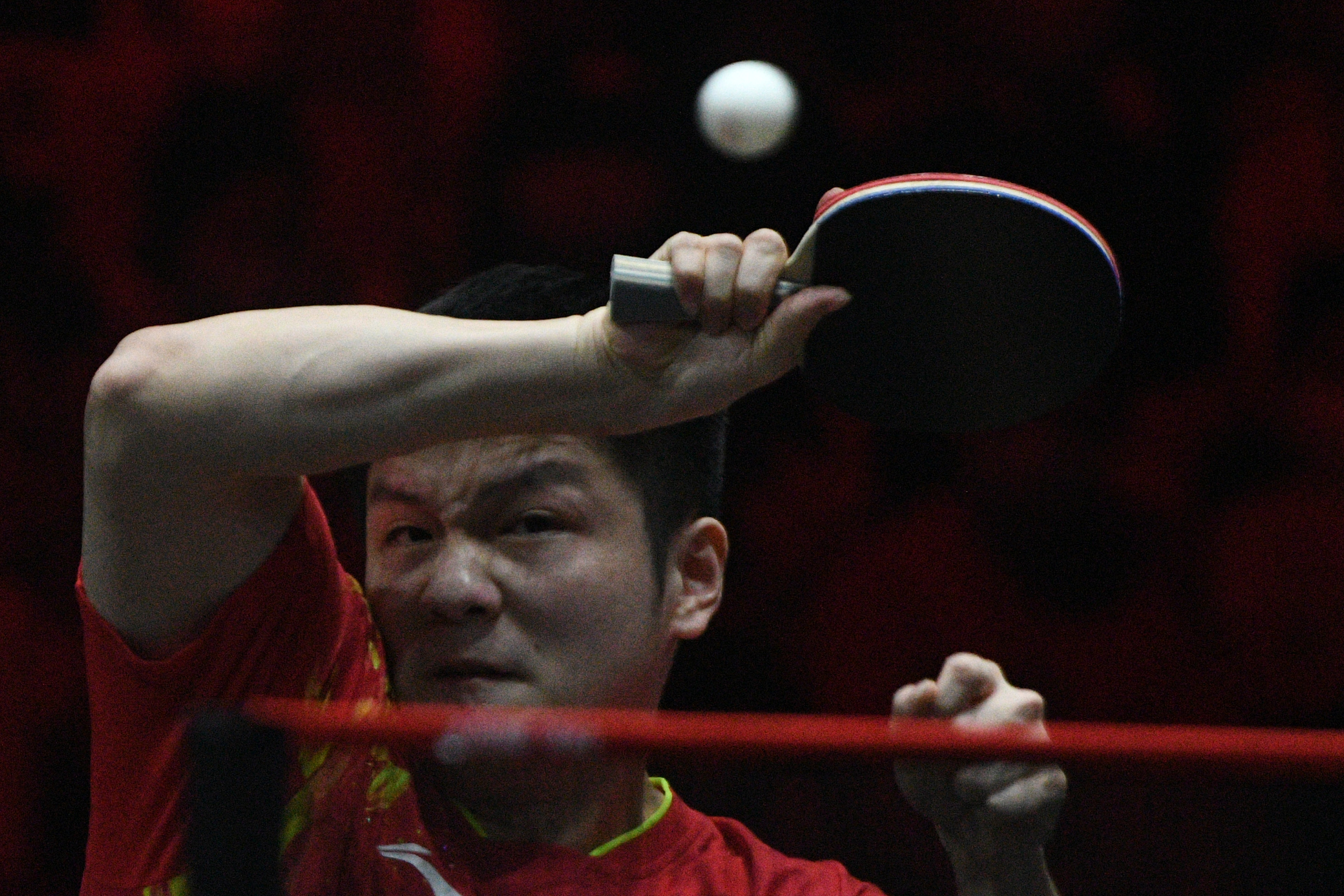 新华社照片,新加坡,2022年3月20日 (体育)(3)乒乓球——WTT新加坡大满贯:樊振东男单夺冠 3月20日,中国选手樊振东在比赛中回球。 当日,在新加坡举行的世界乒乓球职业大联盟(WTT)新加坡大满贯男单决赛中,中国选手樊振东以4比3战胜队友马龙,夺得冠军。 新华社发(邓智炜摄)