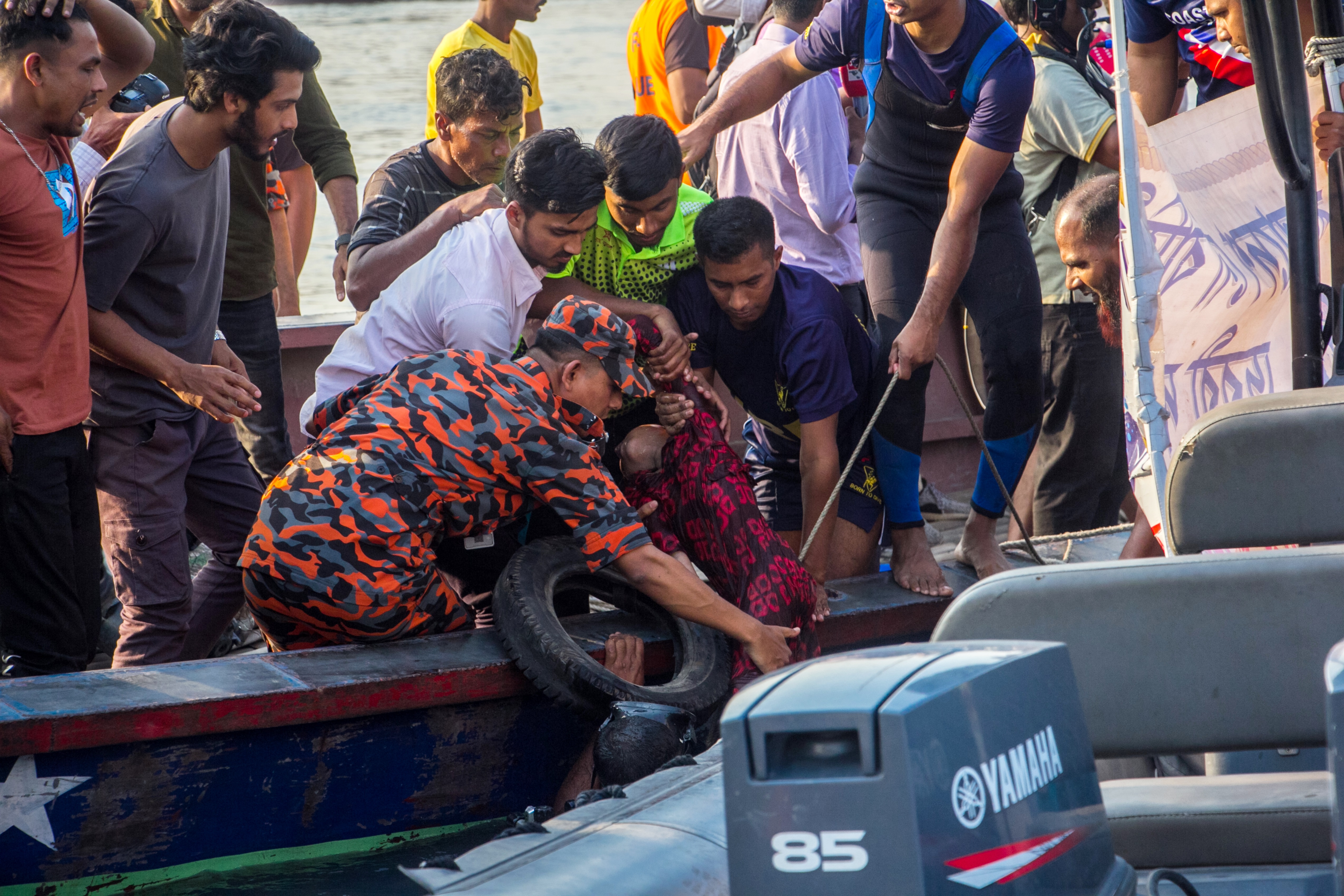 新华社照片,纳拉扬甘杰(孟加拉国),2022年3月21日 (国际)(3)孟加拉国发生船只倾覆事故 3月20日,救援人员在孟加拉国纳拉扬甘杰的事故现场开展搜救工作。 当日,孟加拉国一艘渡轮与另一船只相撞并倾覆,救援人员在首都达卡郊外纳拉扬甘杰地区的河流中发现了6名遇难者遗体。 新华社发