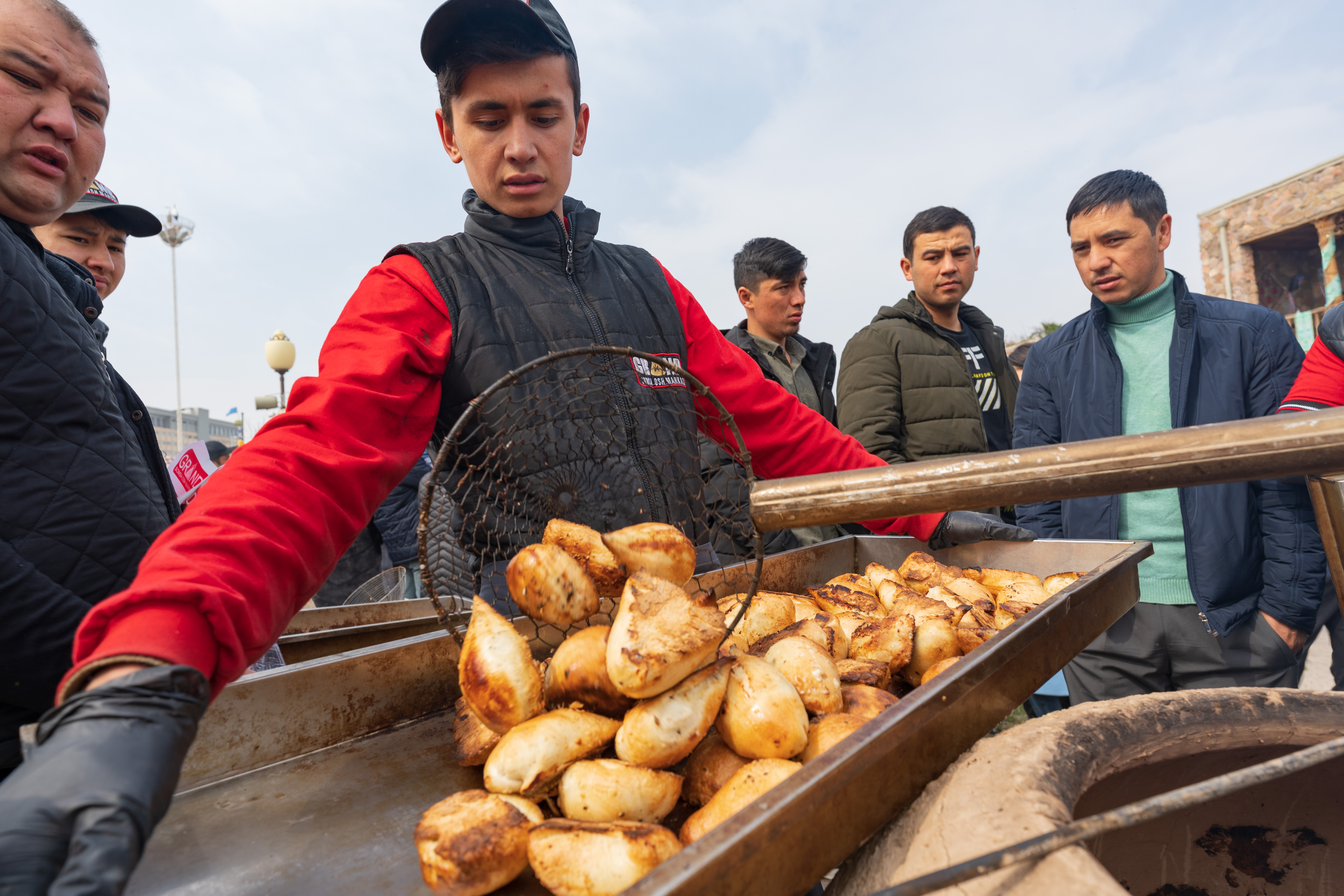 新华社照片,塔什干,2022年3月21日 (国际)(2)乌兹别克斯坦庆祝纳乌鲁斯节 3月20日,在乌兹别克斯坦首都塔什干一处公园庆祝纳乌鲁斯节的活动上,人们等候购买传统美食。 纳乌鲁斯节是中亚国家最重要的传统节日之一,标志着春天的到来和新的一年开始。2009年,纳乌鲁斯节被列入联合国教科文组织非物质文化遗产。 新华社记者 蔡国栋 摄