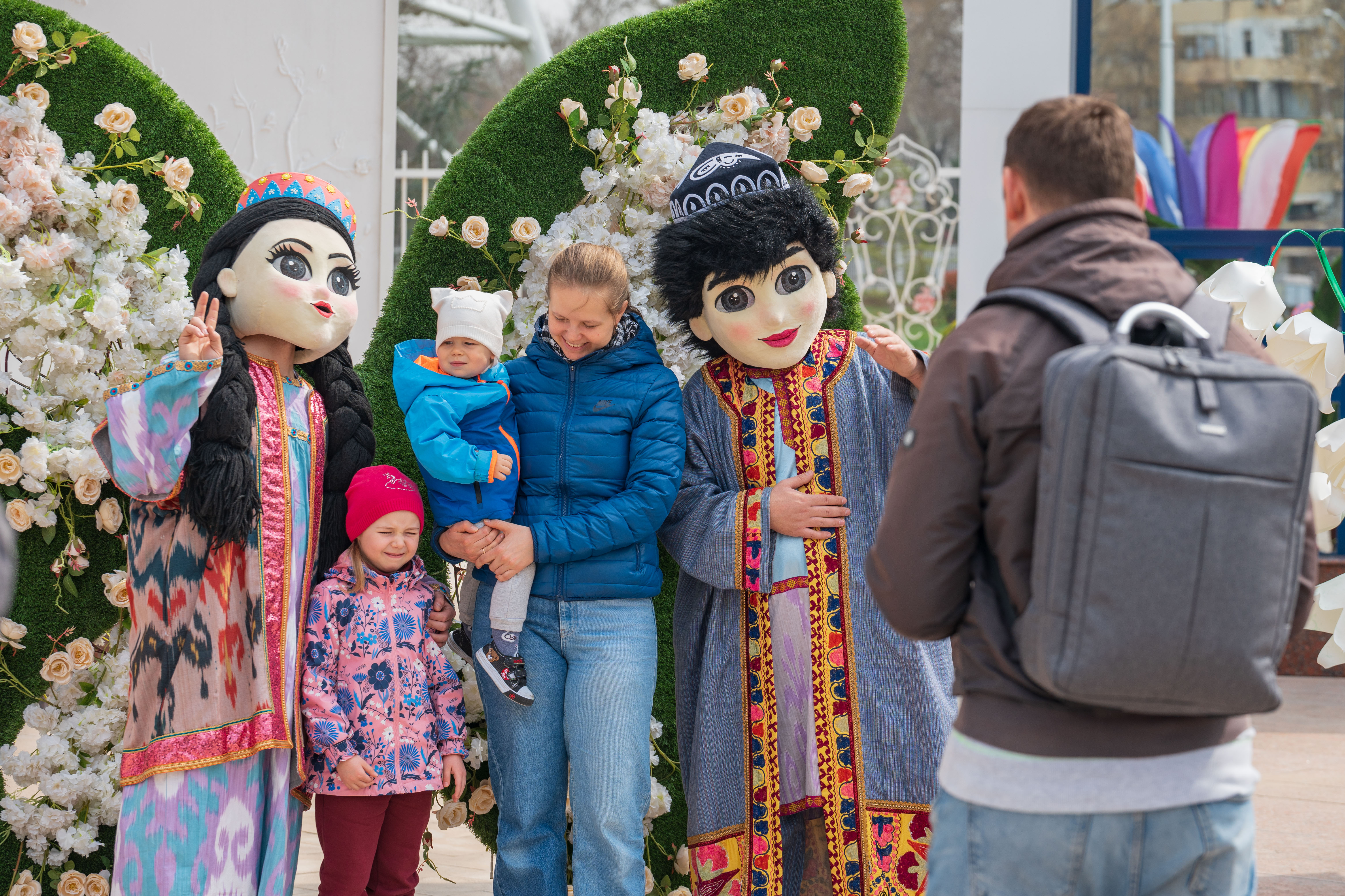 新华社照片,塔什干,2022年3月21日 (国际)(1)乌兹别克斯坦庆祝纳乌鲁斯节 3月20日,在乌兹别克斯坦首都塔什干一处公园庆祝纳乌鲁斯节的活动上,人们合影留念。 纳乌鲁斯节是中亚国家最重要的传统节日之一,标志着春天的到来和新的一年开始。2009年,纳乌鲁斯节被列入联合国教科文组织非物质文化遗产。 新华社记者 蔡国栋 摄
