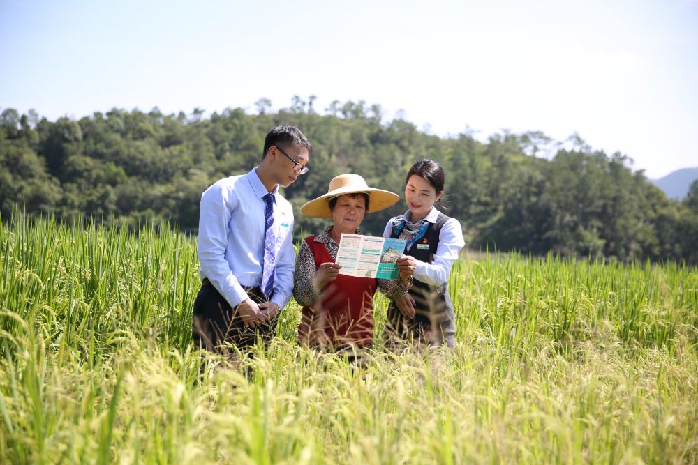 图为农行广东分行员工深入田间地头进行信贷政策宣传