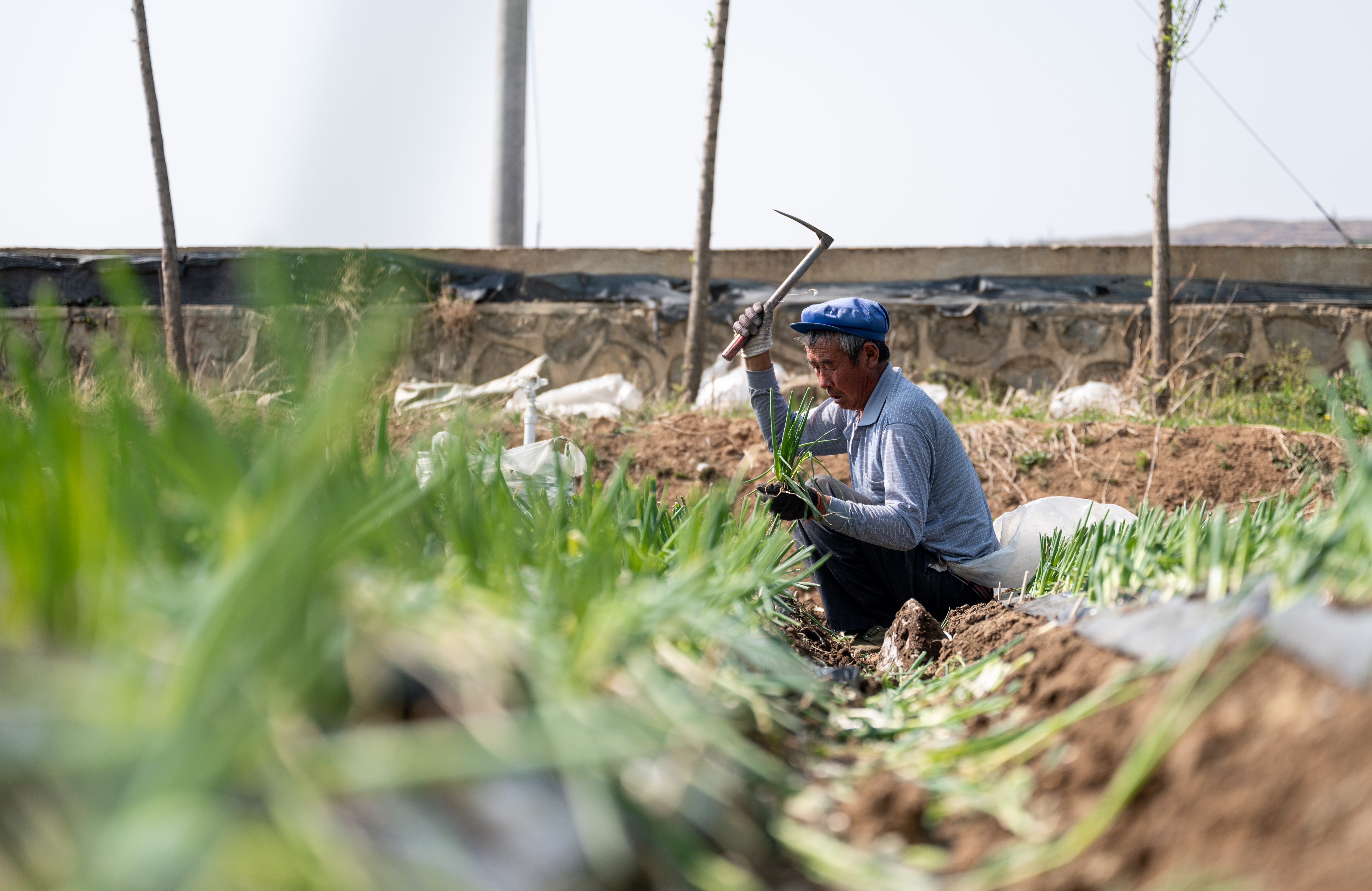 新华社照片,鲁甸(云南),2022年3月21日 云南鲁甸:香葱产业促振兴 3月21日,农民在鲁甸县卯家湾安置区香葱产业基地内劳作。 近年来,云南省鲁甸县着力发展香葱产业,帮助周边县区、安置区群众就近就业,助力乡村振兴。 新华社记者 王冠森 摄