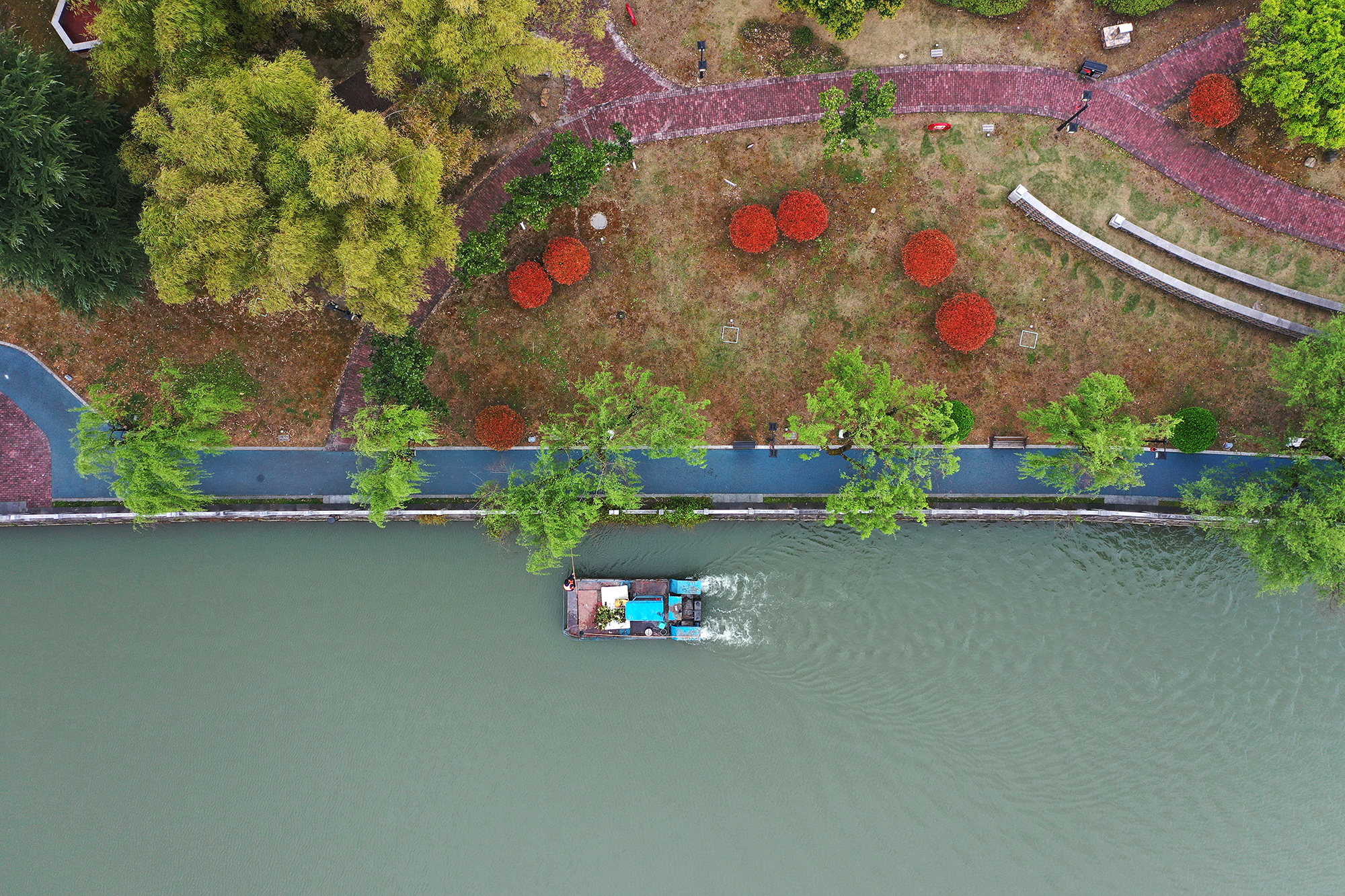 新华社照片,余庆(贵州),2022年3月21日 爱水护水 迎世界水日 3月21日,环卫工人在贵州省遵义市余庆县牛场河清理河道内杂物(无人机照片)。 当日,全国多地举行丰富多彩的爱水护水宣传教育活动和志愿活动,迎接即将到来的“世界水日”。 新华社发(穆明飞 摄)