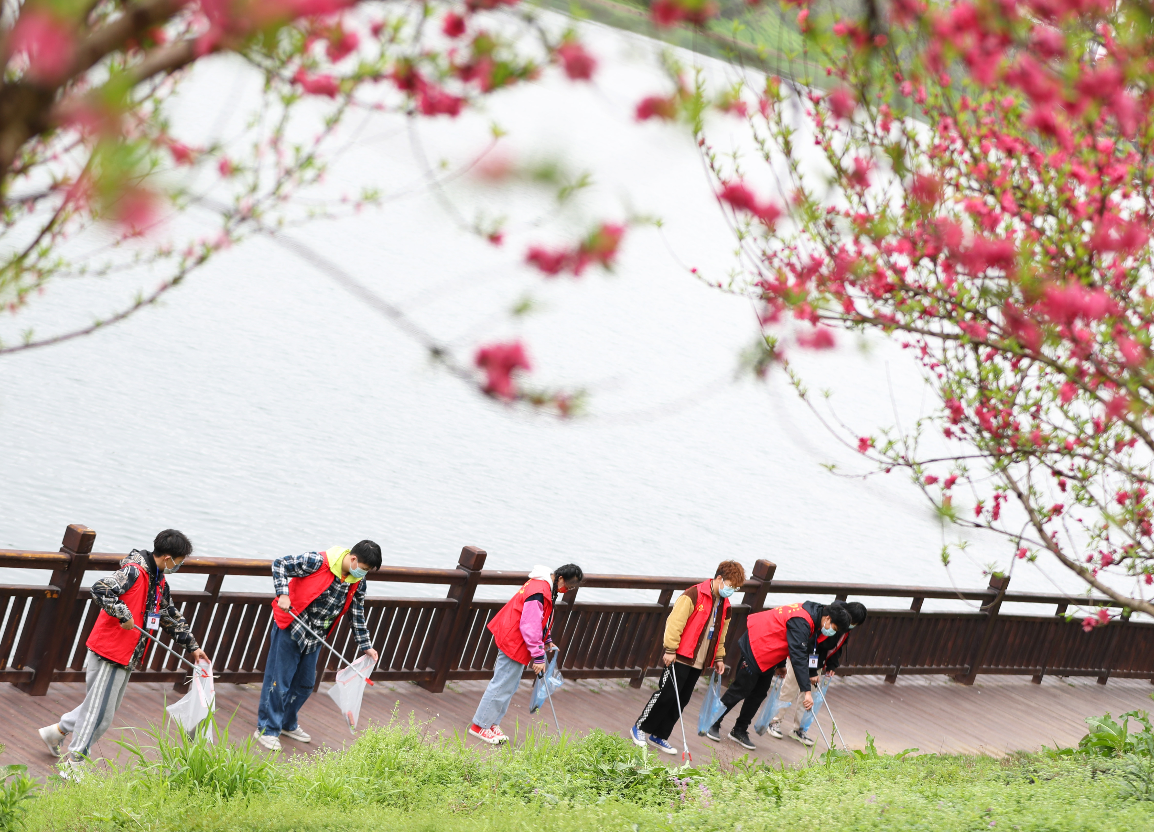 新华社照片,衡阳(湖南),2022年3月21日 爱水护水 迎世界水日 3月21日,在湖南省衡阳市雁峰区东洲岛上,南华大学土木工程学院志愿者在净滩护水行动中捡垃圾。 当日,全国多地举行丰富多彩的爱水护水宣传教育活动和志愿活动,迎接即将到来的“世界水日”。 新华社发(曹正平 摄)