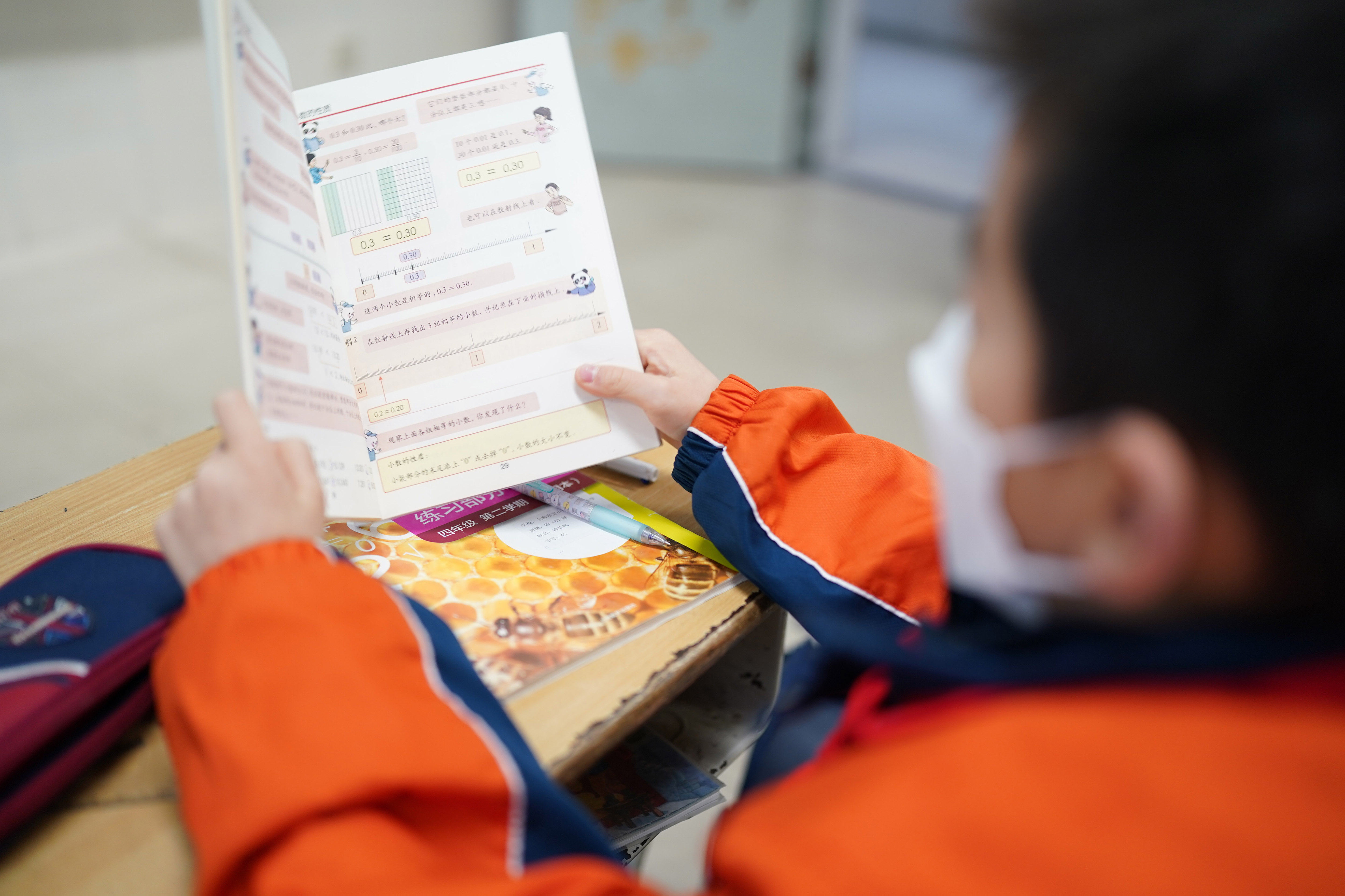 新华社照片,上海,2022年3月21日 一个人的课堂 3月21日,蒲芸帆在教室内跟着“空中课堂”学习。 当日,上海市杨泰实验学校四年级六班的蒲芸帆照常从学校宿舍醒来,用完早餐,走进教室开始一天的学习生活。与以往不同的是,教室里只有他一名学生。由于留校住宿等原因,蒲芸帆成了班级里唯一需要在校参与线上学习的学生。据了解,杨泰实验学校共有十多名学生因各种原因需要留校参与线上学习。学校了解情况后第一时间制定了方案,在遵守防疫政策、严格落实疫情防控措施的前提下,安排居家照护存在困难的学生到校参加线上教学。 据悉,上海市中小学已于3月12日起,全部调整为线上教学。同时,上海市教委推出人性化的补充举措:居家照护有困难的中小学生,可申请到校,由学校安排教师组织学生在线上网课,并提供看护服务和午餐。 新华社记者 丁汀 摄
