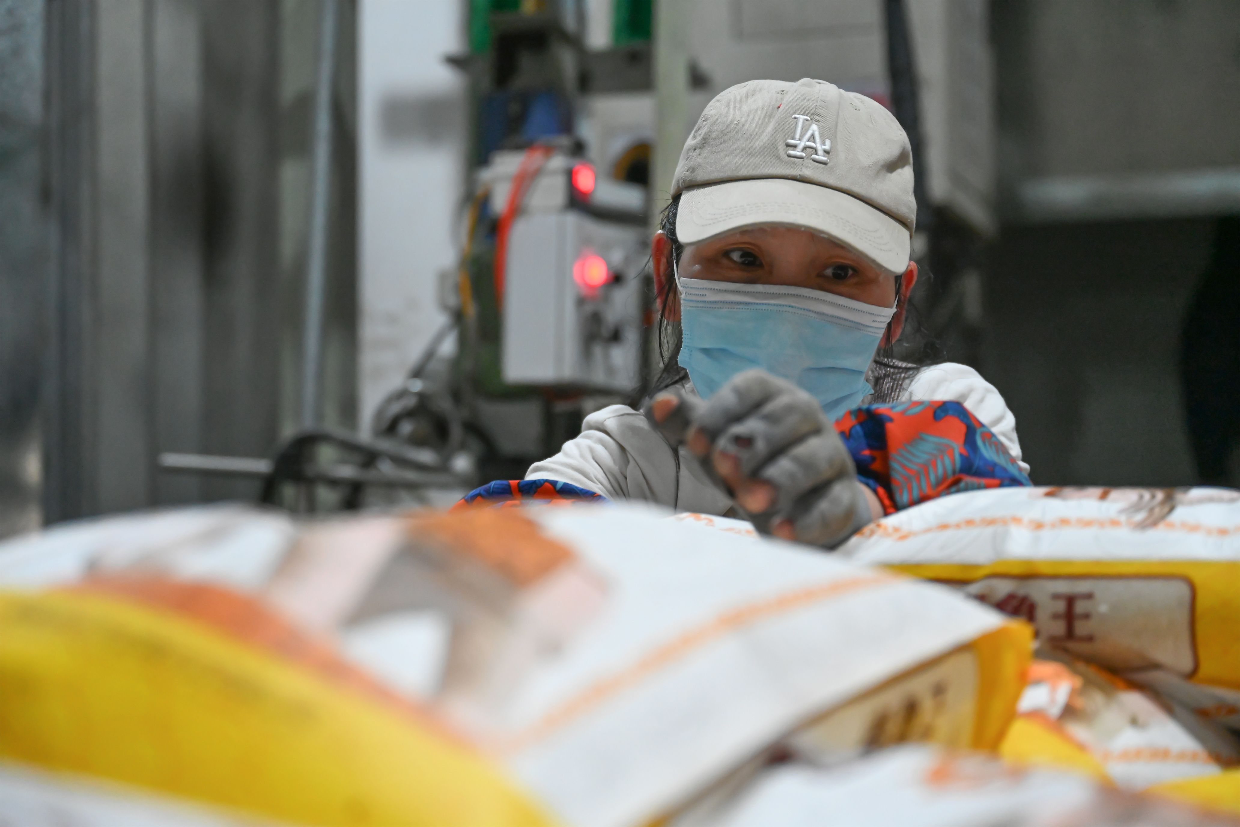 新华社照片,泉州(福建),2022年3月21日 防疫生产两不误 “泉”力以赴保民生 3月20日,工人在泉州南安市一家米业工厂作业。 福建省泉州市本轮新冠肺炎疫情造成了较大的物资需求。连日来,作为民营经济重镇的泉州市,发动各方力量,在做好各项防疫措施的前提下,加紧生产各类生活必需物资,保民生、保供应。 新华社发(周义 摄)