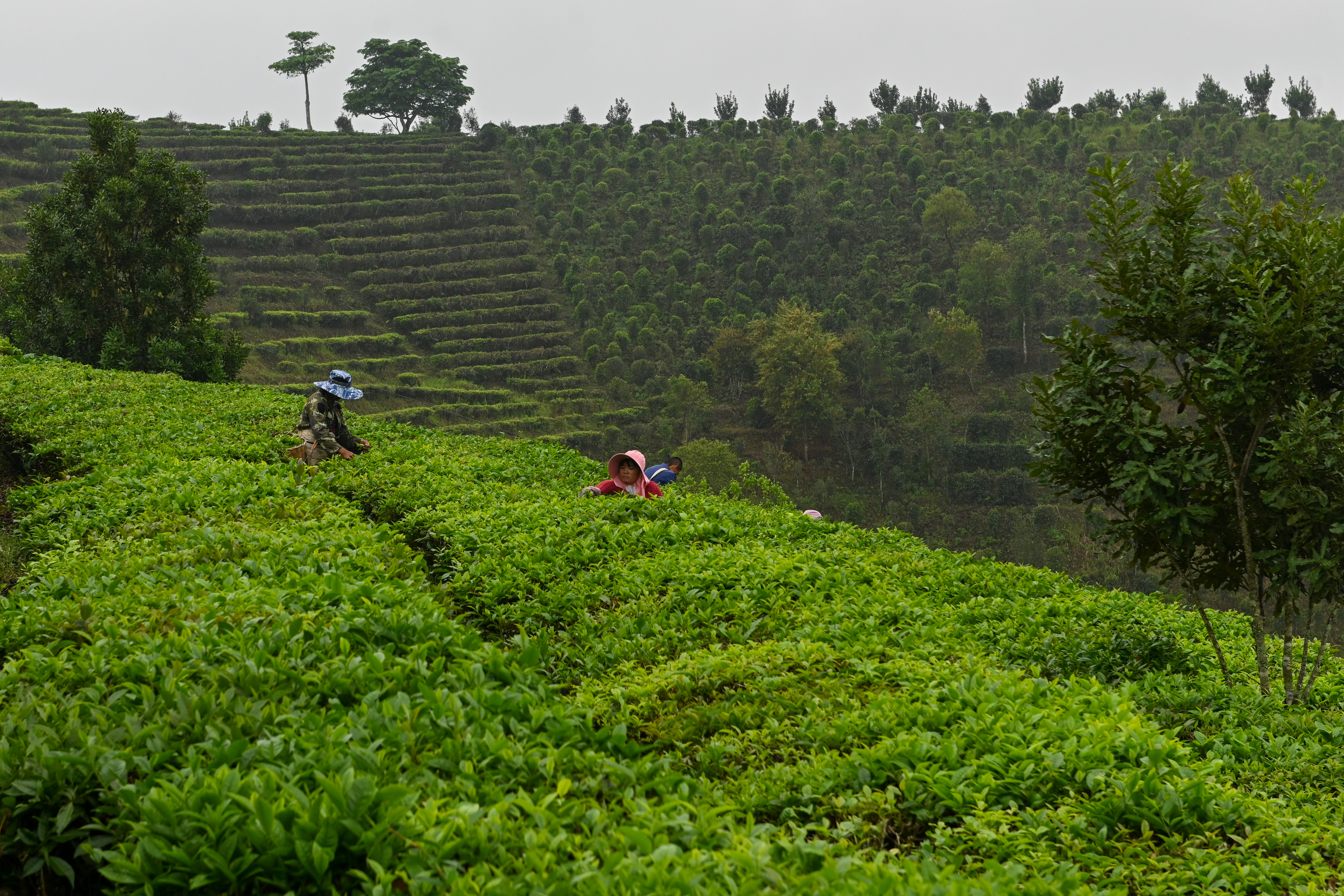 新华社照片,昆明,2022年3月21日 擦亮“北回归沙漠带上的绿宝石” 3月16日,茶农在景洪市大渡岗乡茶园森林化改造示范基地采摘茶叶。 (配本社同题文字稿) 新华社记者 曹梦瑶 摄