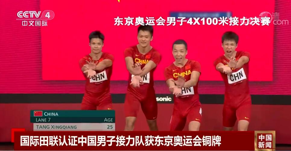 央视网消息:国际田联官网显示,中国运动员汤星强、谢震业、苏炳添、吴智强的信息中都已标注了“奥运会铜牌得主”。这意味着,中国队首次获得奥运会男子4X100米接力铜牌。2021年8月6日,苏炳添率领的中国队在东京奥运会男子4X100米接力决赛中跑出了37秒79的成绩,名列第四。获得第二的英国队因队员乌贾被认定违反了反兴奋剂条例,于今年2月被国际体育仲裁法庭裁定收回银牌。由此,中国队递补获得铜牌。