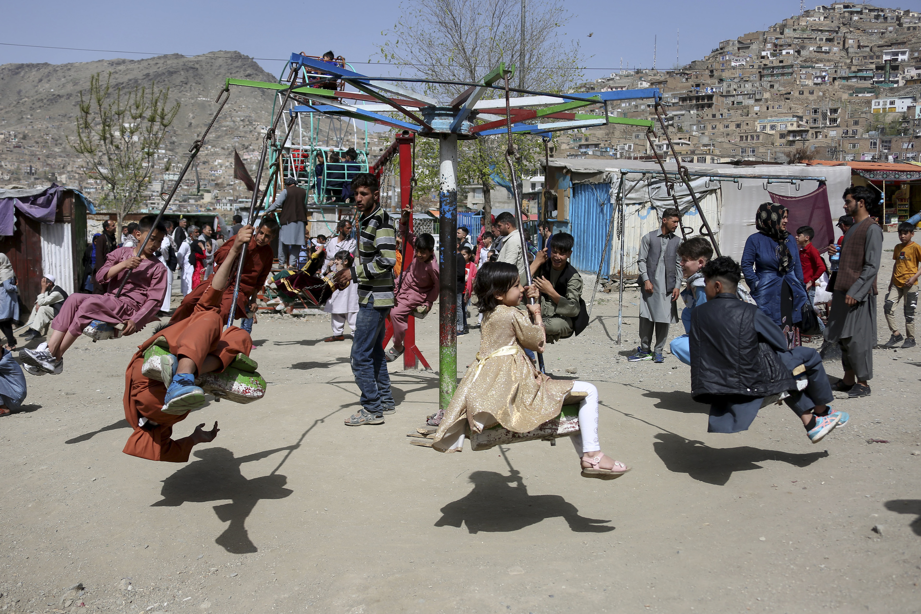 新华社照片,喀布尔,2022年3月22日 (国际)(3)阿富汗民众迎来诺鲁孜节 3月21日,孩子们在阿富汗喀布尔的诺鲁孜节庆祝活动上玩耍。 阿富汗民众21日迎来诺鲁孜节。 新华社发(塞夫拉赫曼·萨菲摄)