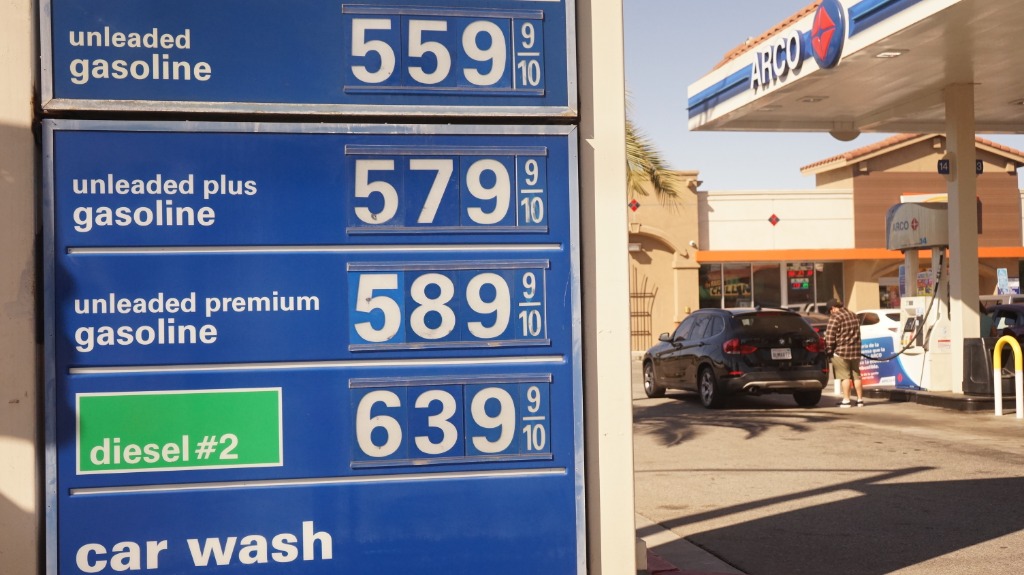 这是3月20日在美国加利福尼亚州洛杉矶县拍摄的一处加油站显示的油品价格。新华社发(曾慧摄)