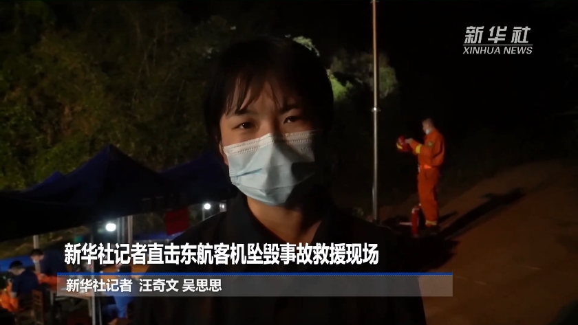我是新华社记者吴思思,我现在就是在MU5735东航客机坠毁的现场。我是于昨天晚上12点的时候抵达了指挥部,当时指挥部就已经在为进一步搜救在部署设备和人员,工作人员也是忙了一个晚上的。据现场参与救援人员说,他们是下午就已经进来,然后当时是可以看到整个三面环山的山上都是满布着飞机残骸,然后山坳间也被飞机砸了一个深坑,空气中一直到晚上都还有很浓的汽油味。