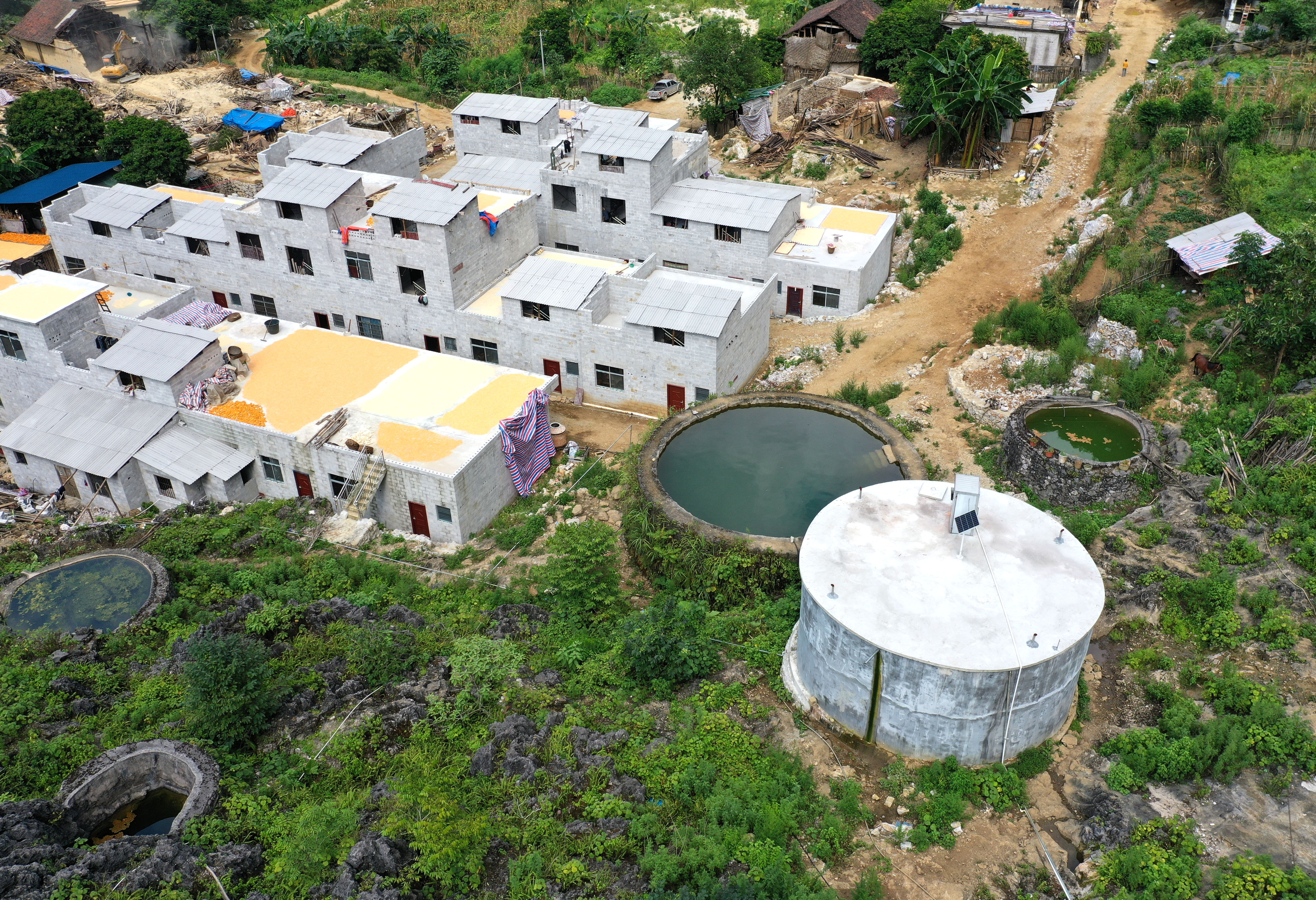 这是广西大化瑶族自治县江南乡上和村群众的家庭水柜(2021年2月6日摄,无人机照片)。新华社记者 张爱林 摄