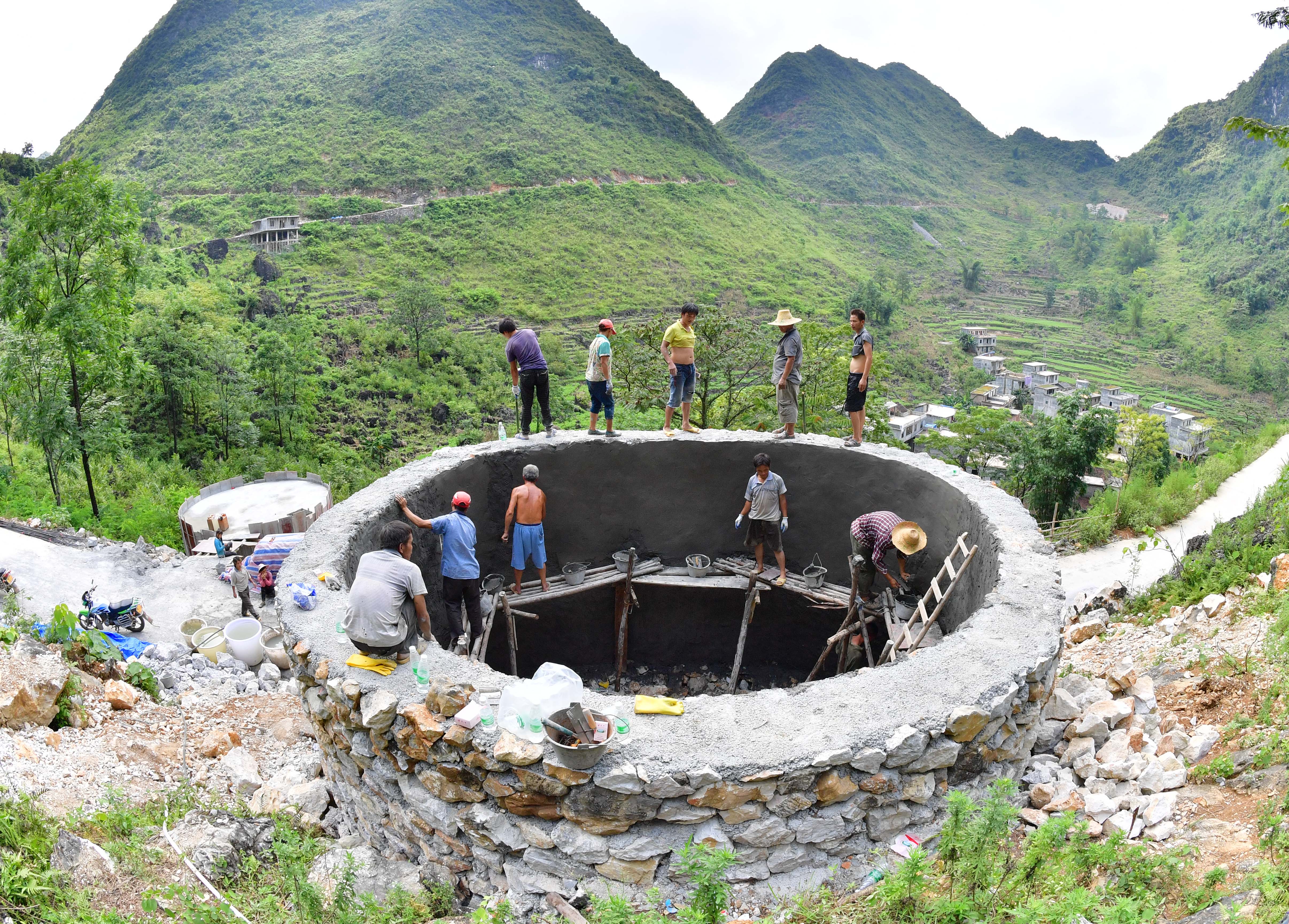 在广西大化瑶族自治县板升乡弄勇村,群众在修建家庭水柜(2017年9月2日摄)。新华社记者 黄孝邦 摄