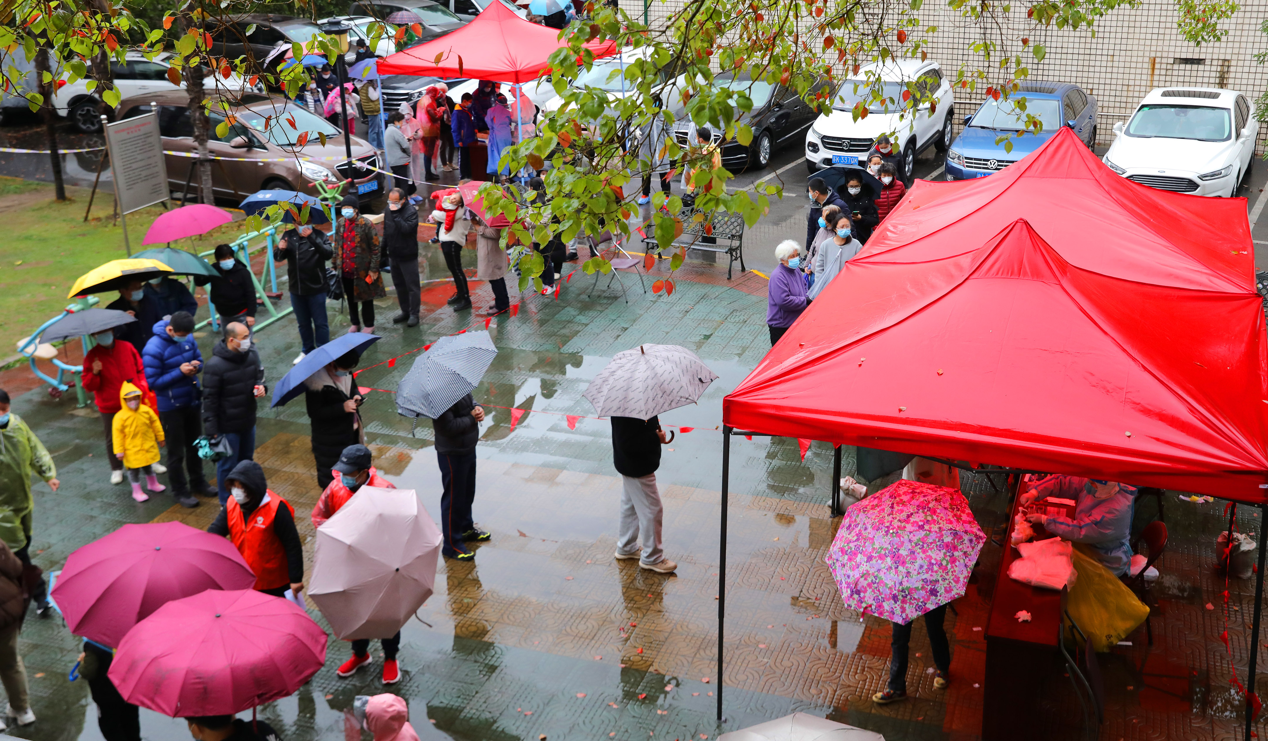 3月21日,位于上海市闵行区的一个居民小区内,居民在志愿者组织下排队进行核酸检测采样。新华社记者 方喆 摄