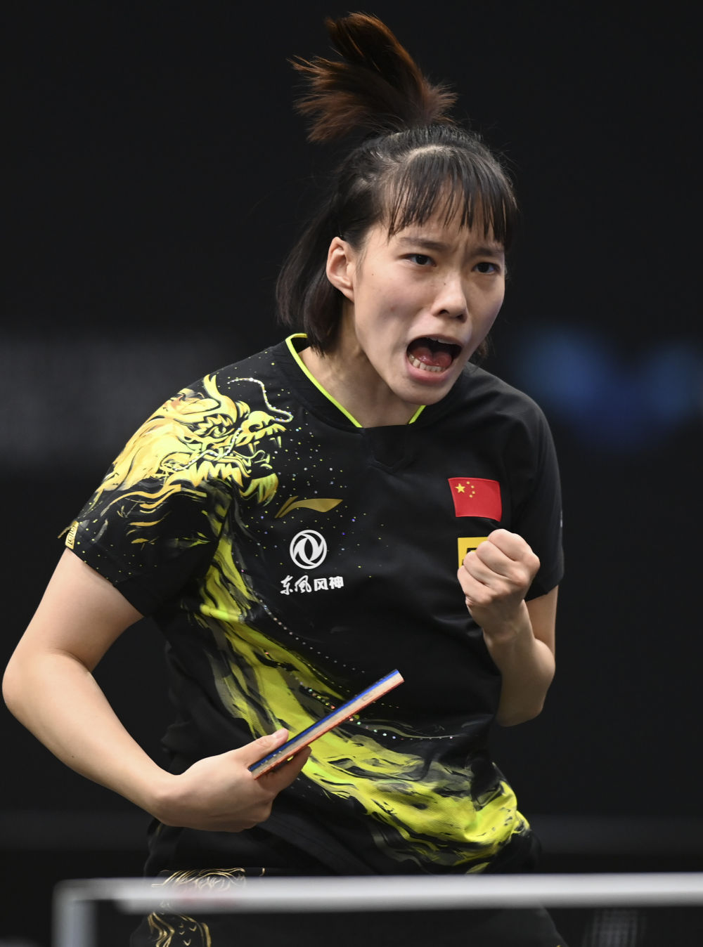 3月21日,在卡塔尔首都多哈举行的2022年WTT挑战赛女子单打首轮比赛中,中国选手石洵瑶以3比2战胜中国香港选手苏慧音,晋级下一轮。新华社发(尼库摄)