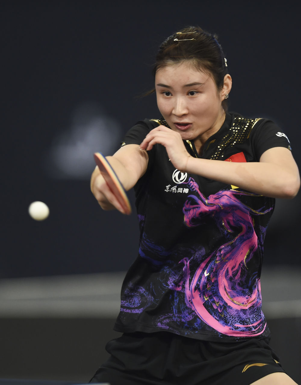 3月20日,2022年WTT卡塔尔挑战赛预选赛在卡塔尔首都多哈举行,中国选手杨蕙菁在比赛中回球,她以3比0战胜印度选手慕克吉,晋级正赛。新华社发(尼库摄)
