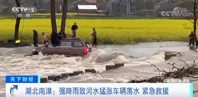 连日来的强降雨,导致湖北襄阳市南漳县境内大小河道河水猛涨。昨天,一辆面包车从桥面行驶时,被水冲入河中,7人被困,当地消防立即赶往现场进行救援。