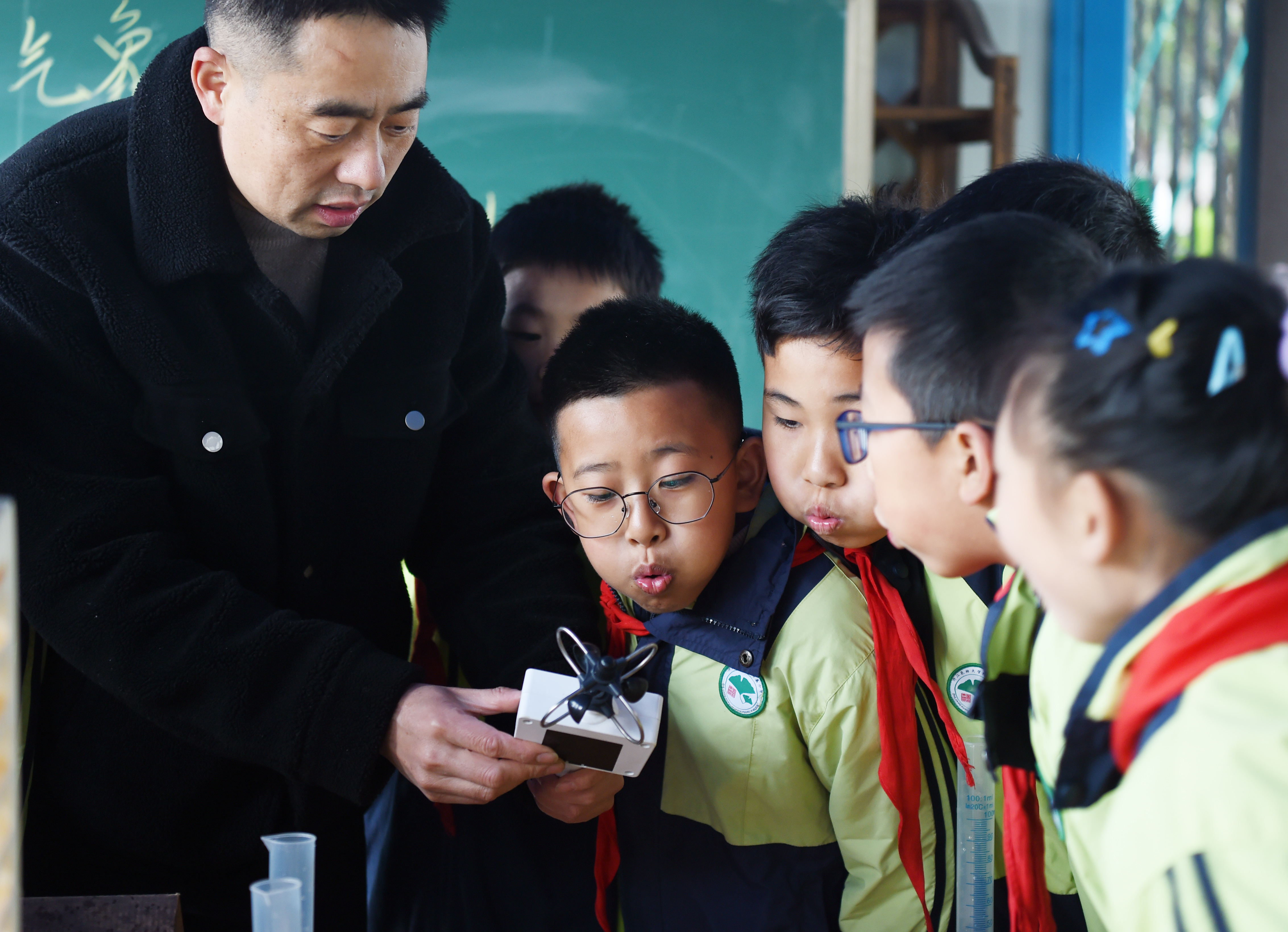 新华社照片,临安(浙江),2022年3月22日 气象日里学气象 3月22日,在位于杭州市临安区的浙江农林大学附属小学,学生在老师指导下用风杯式风速仪了解风速。 当日是世界气象日,各地开展以气象为主题的科普活动,提高人们对气象的关注和了解,增强环境保护意识。 新华社发(金凯华 摄)