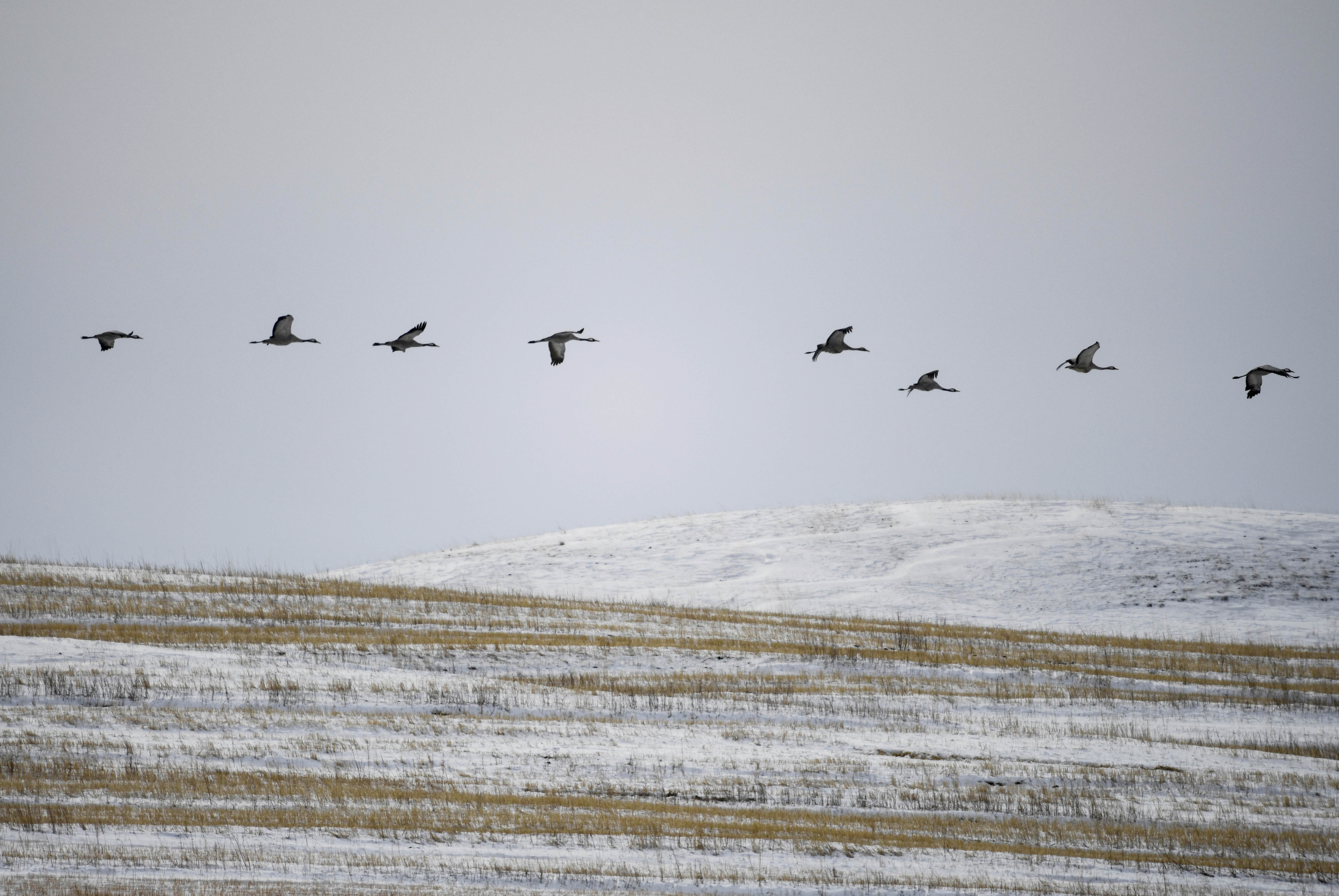 新华社照片,丰宁(河北),2022年3月22日 坝上地区飞鸟舞翩跹 这是3月22日在丰宁满族自治县坝上地区拍摄的鸟儿。 近期,随着气温回暖,大批灰鹤、赤麻鸭等候鸟飞抵河北省丰宁满族自治县坝上地区栖息觅食,成为当地一道靓丽的风景。 新华社发(王立群 摄)