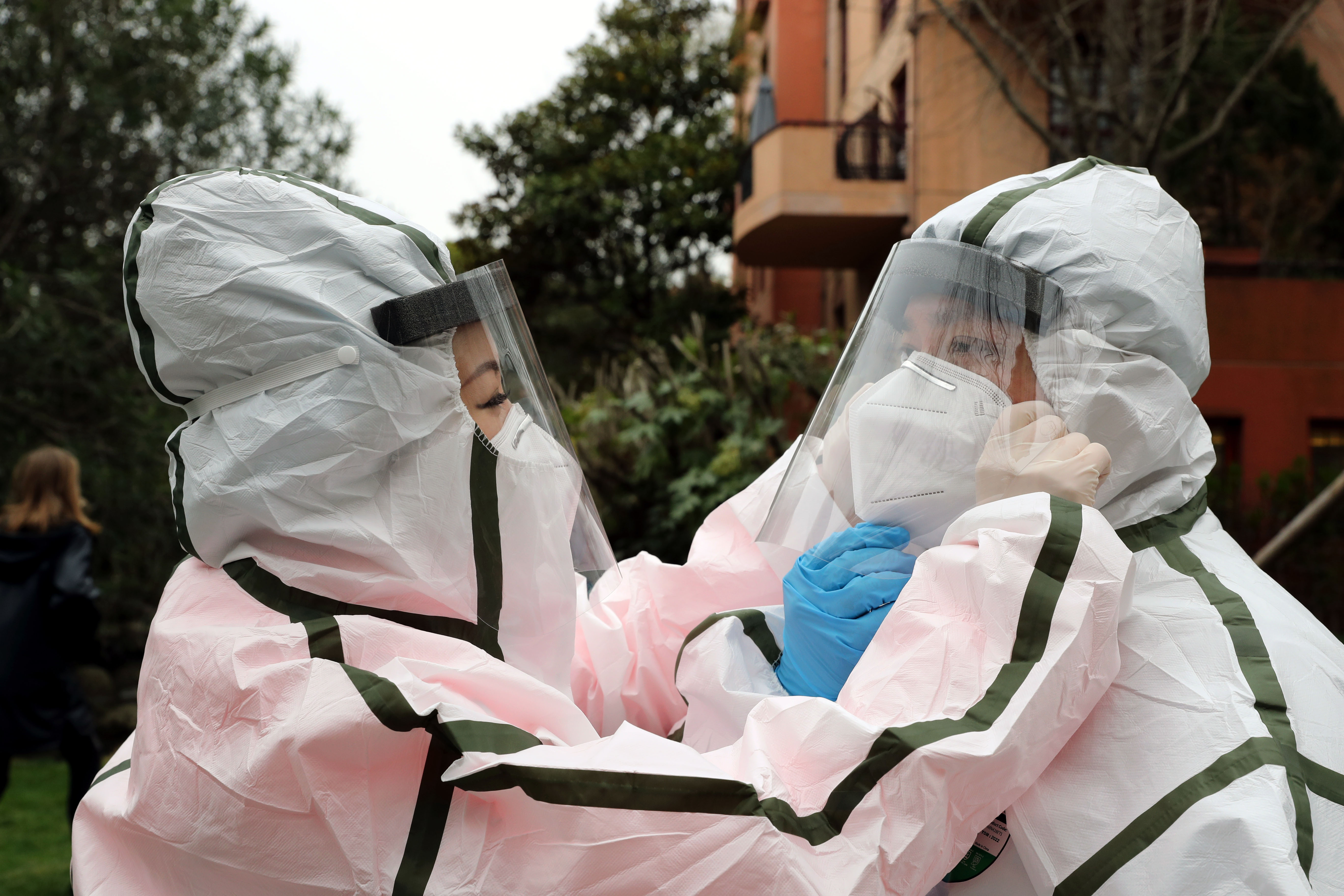 新华社照片,上海,2022年3月22日 夫妻齐心搭起“语言桥” 助力上海国际社区抗疫 3月22日,在上海西庭网球俱乐部公寓,外语志愿者刘萌子(左)帮助即将上岗服务的丈夫张叶整理防护装备。 近日,在上海市闵行区华漕镇国际社区的核酸筛查现场,各个环节都有外语志愿者引导。一对夫妻外语志愿者——张叶与刘萌子已经上岗四天了。夫妻俩擅长英语,沟通能力强,现场引导外籍居民配合采样,与外籍志愿者合作,帮助沟通社区封控期间的事务,在国际社区的抗疫一线无私奉献。 新华社记者 刘颖 摄
