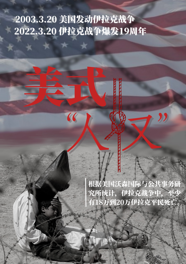 新华社巴格达3月22日电(记者董亚雷 张淼)2003年3月20日,美国及其西方盟友以所谓伊拉克有大规模杀伤性武器为由,不顾国际社会强烈反对,绕过联合国安理会,悍然入侵伊拉克。时至今日,美国也未拿出大规模杀伤性武器的证据。而这场战争导致伊拉克生灵涂炭,持续动荡,极端组织趁乱坐大,恐怖袭击和教派冲突频发。