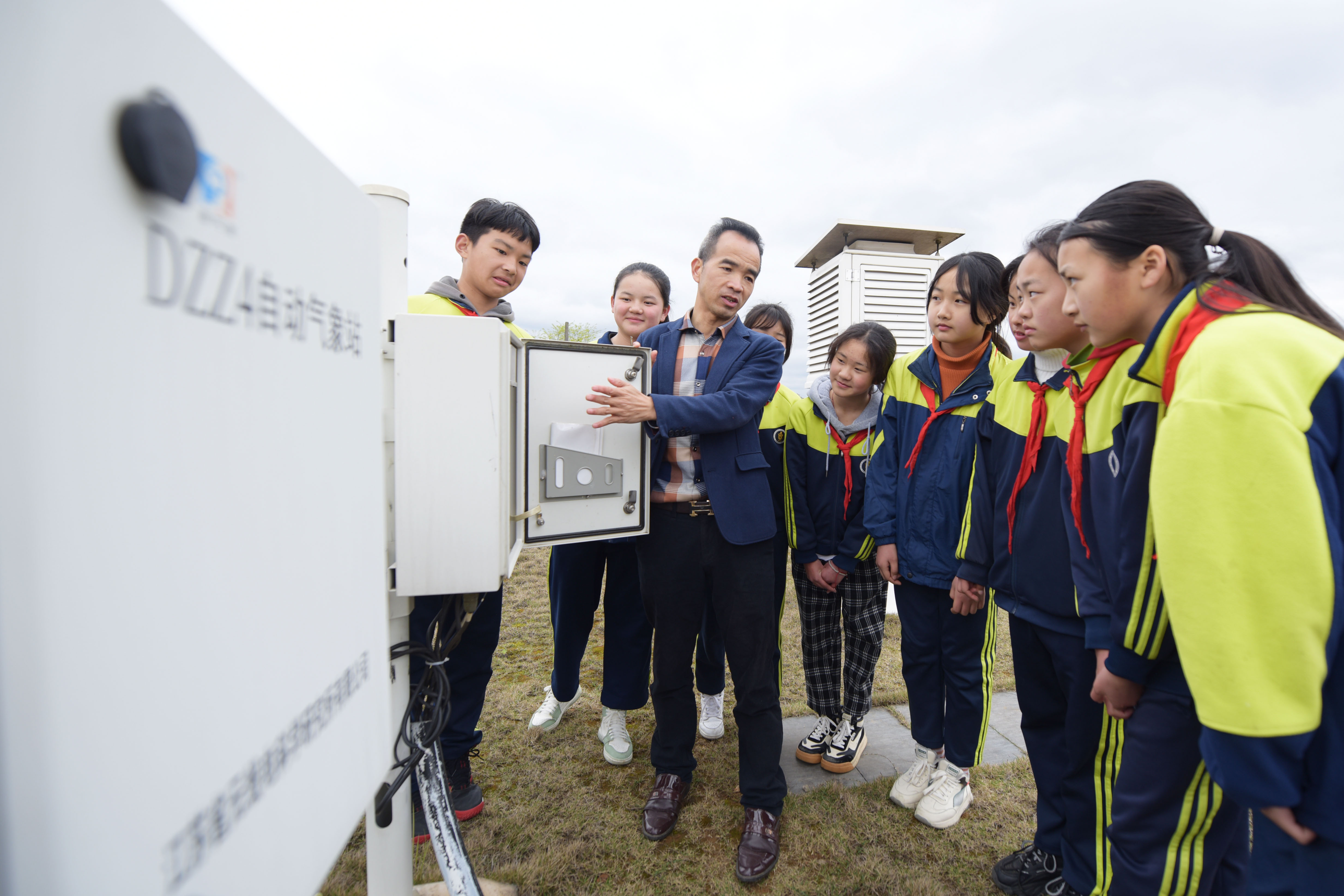 新华社照片,岑巩(贵州),2022年3月22日 学气象知识 迎接世界气象日 3月22日,贵州省黔东南苗族侗族自治州岑巩县气象局工作人员为学生讲解气象知识。 世界气象日即将到来,各地开展以气象为主题的科普活动,提高人们对气象的关注和了解,增强环境保护意识。 新华社发(唐鹏 摄)
