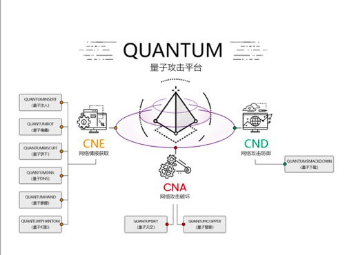 量子攻击系统是美国国家安全局最强大的互联网攻击工具,也是其进行网络情报战最重要的能力系统之一,创建于2004年,其下包含多个子项目,均以QUANTUM开头命名。360云端安全大脑现已发现其包含的九种先进网络攻击能力模块,分别为QUANTUMINSERT(量子注入)、QUANTUMBOT(量子傀儡)、QUANTUMBISCUIT(量子饼干)、QUANTUMDNS(量子DNS)、QUANTUMHAND(量子掌握)、QUANTUMPHANTOM(量子幻影)、QUANTUMSKY(量子天空)、QUANTUMCOPPER(量子警察)、QUANTUMMACKDOWN(量子下载)。