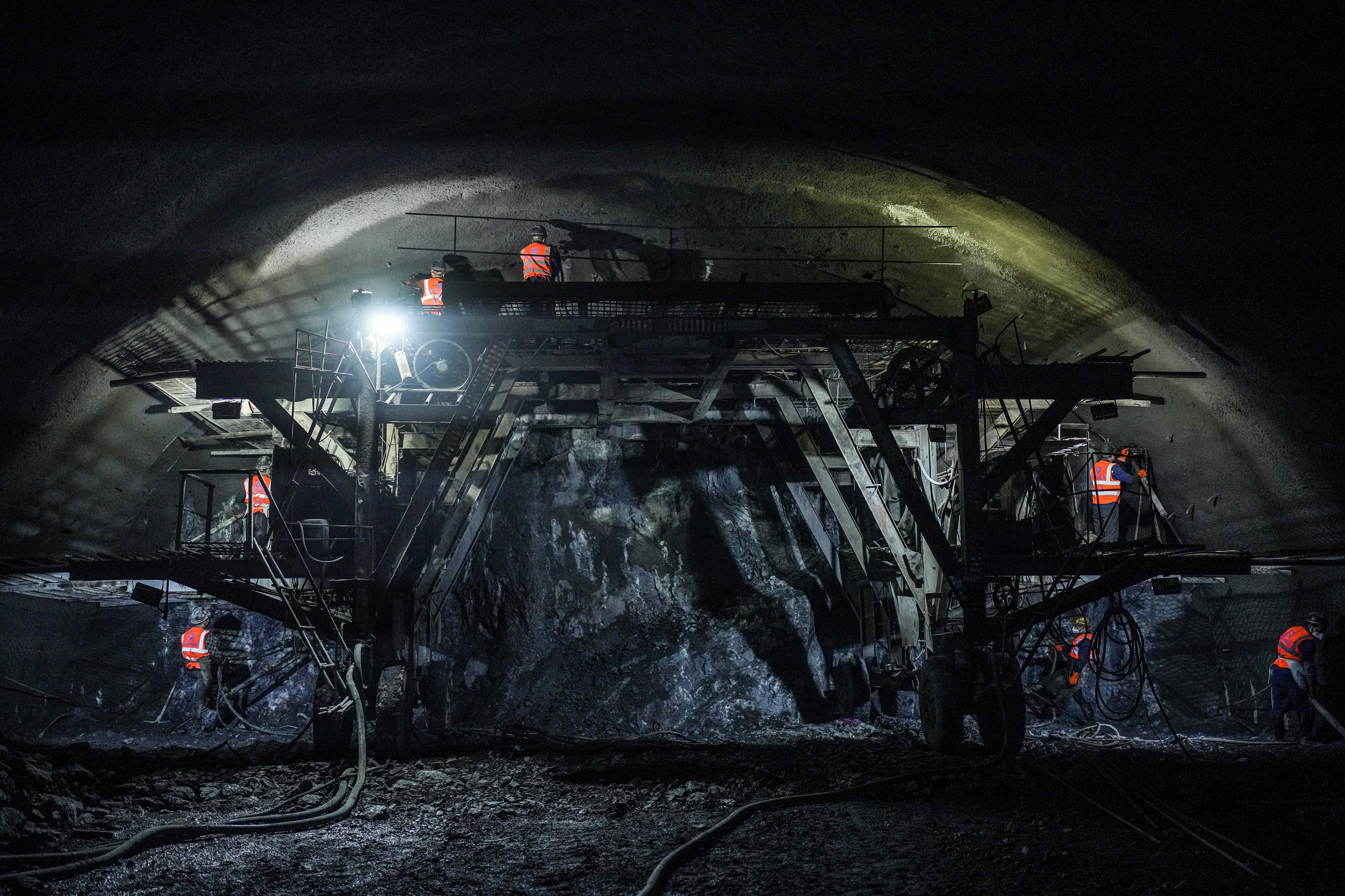 新华社照片,桐梓(贵州),2022年3月22日 贵州桐梓隧道进口端双幅掘进突破10000米大关 3月22日,工人在重遵扩容项目桐梓隧道内施工。 当日,记者从贵州高速集团了解到,兰海高速重庆至遵义段(贵州境)扩容工程项目T7合同段桐梓隧道进口端双幅掘进突破10000米大关,进口工区与2号斜井工区实现顺利贯通,为全隧贯通奠定坚实基础。 据介绍,重遵扩容项目由贵州高速集团投资建设,路线全长118.918公里。其中控制性工程桐梓隧道位于遵义市桐梓县境内,全长10.497公里,最大埋深约 639.07米,为分离式特长隧道,采用双向六车道高速公路标准建设,设计时速100公里,是贵州省内第一长隧道。 新华社记者 陶亮 摄