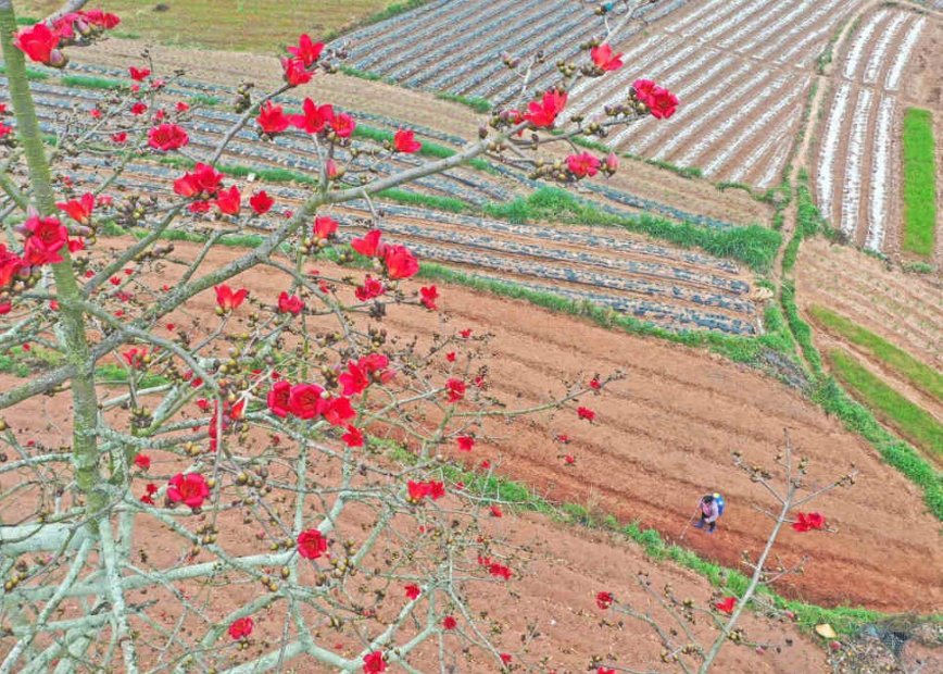 春分时节,在广西南宁市邕宁区蒲庙镇,农民抢抓农时开展农事活动,田间地头一派繁忙景象。
