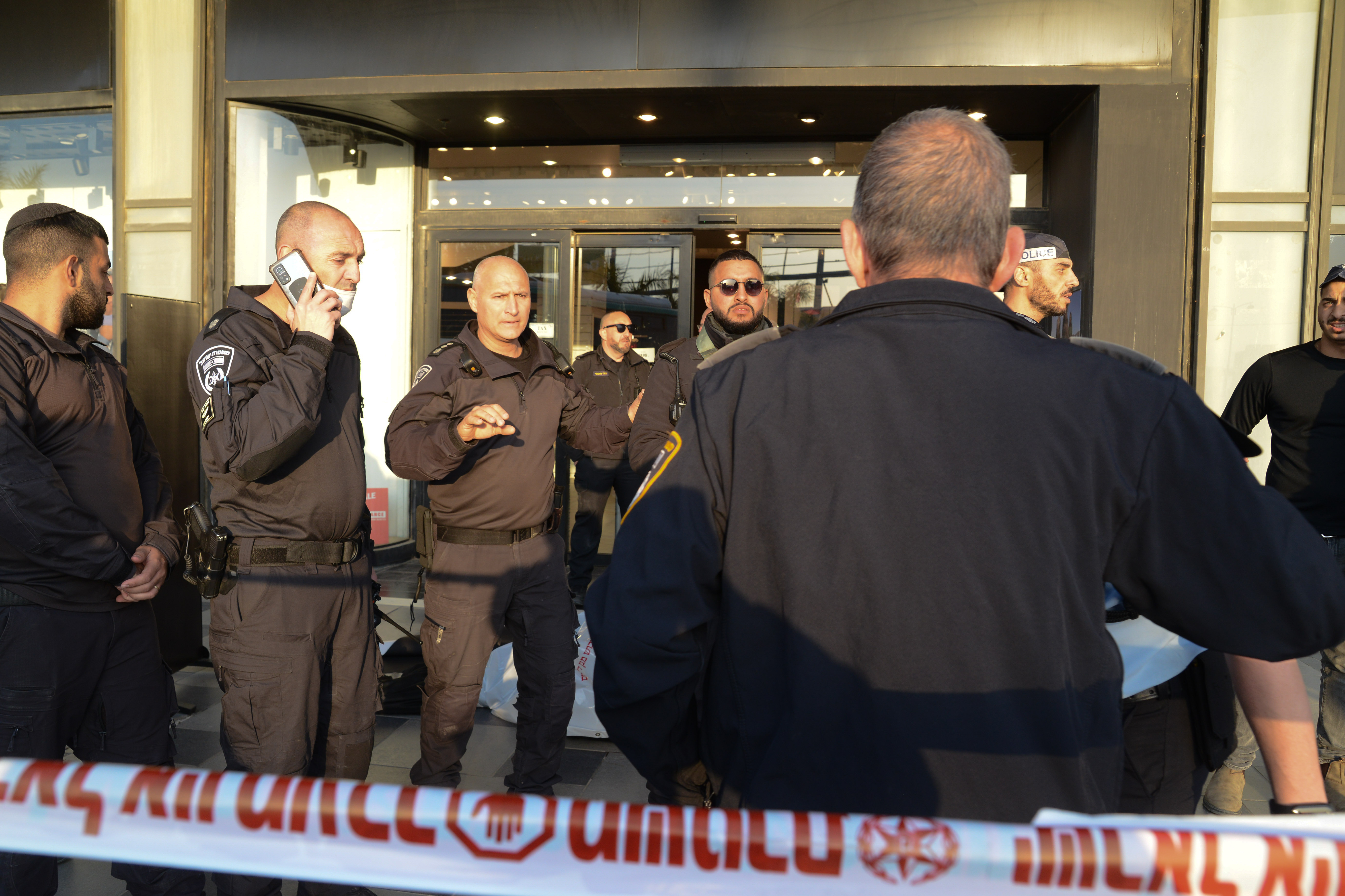新华社照片,贝尔谢巴(以色列),2022年3月23日 (国际)(3)以色列南部发生袭击事件致4死2伤 3月22日,安全人员在以色列贝尔谢巴的袭击现场工作。 以色列警方22日说,该国南部城市贝尔谢巴当天发生一起袭击事件,造成4人死亡、2人受伤。 新华社/基尼图片社