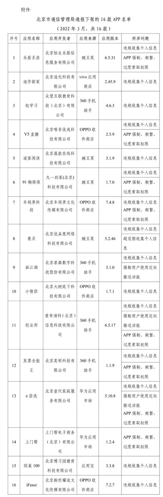 日前,北京市通信管理局发布关于下架16款侵害用户权益APP的通报,其中涉及乐居买房、e袋洗、道客阅读等。