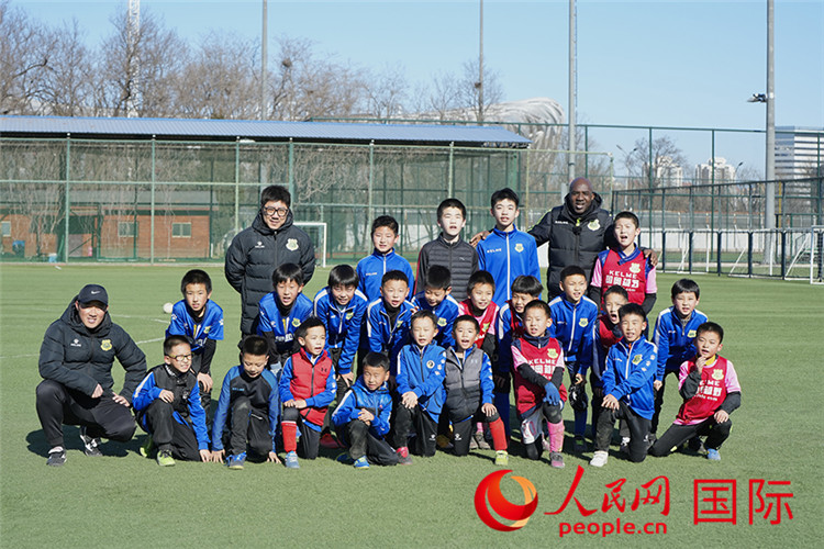 李卡德组织小球员们参加对抗练习。人民网记者 张若涵摄