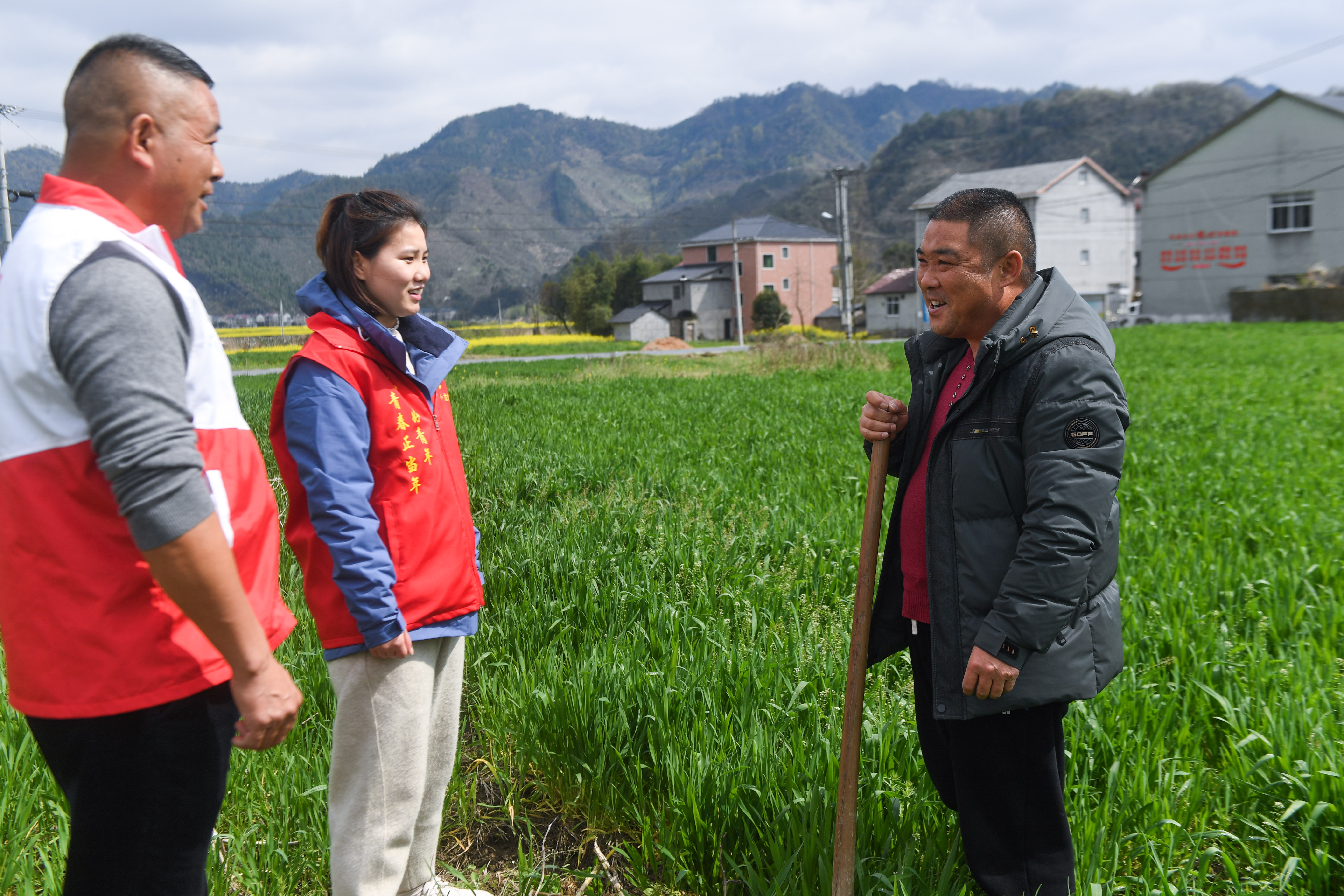 新华社照片,杭州,2022年3月23日 杭州临安:“非粮化”整治保障粮食安全 3月23日,杭州市临安区龙岗镇“田间巡察队”的党员志愿者在林坑村的小麦地里与种植户交流耕地种植情况。 近年来,浙江省杭州市临安区龙岗镇围绕耕地保障、农民增收、产业延伸、生态赋能等方面全力推进粮食生产功能区“非粮化”整治,积极打好“连片流转、直接清退、优化调整”组合拳,稳定粮食生产、保障粮食安全,为村集体增收提供保障的同时,也为乡村农文旅融合发展打下良好基础。 新华社记者 徐昱 摄
