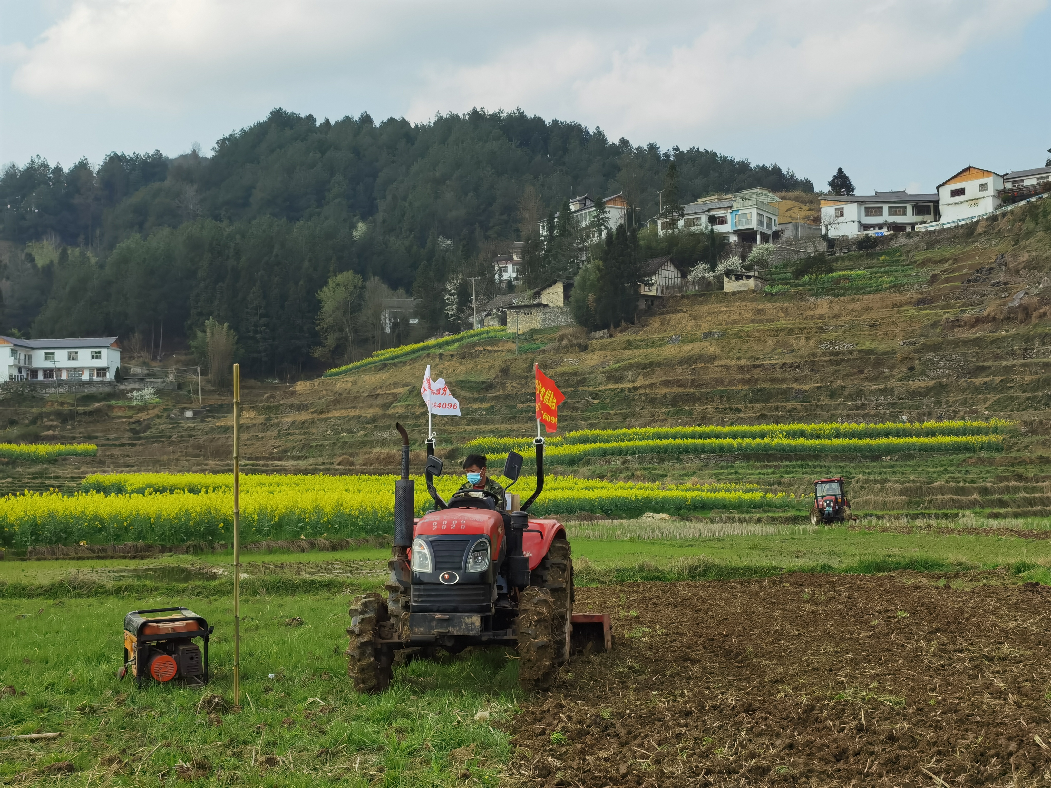 纵横来回的拖拉机,此起彼伏的轰鸣声……来到贵阳市修文县六屯镇长田村一处稻油轮作基地,原野阡陌上,金黄的油菜花间,农机手正操作着机械辛勤耕作。
