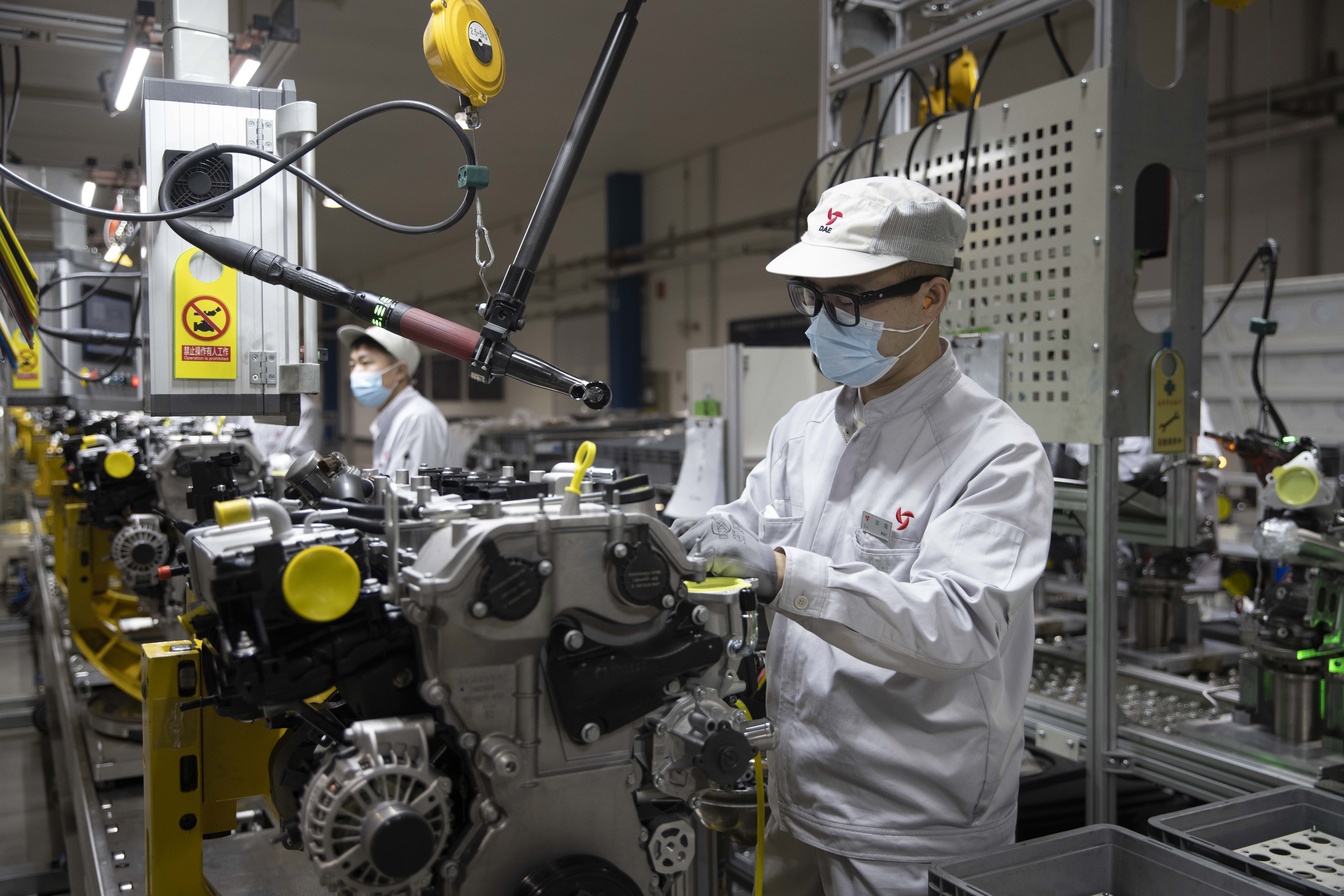 新华社照片,哈尔滨,2022年3月23日 战疫情保生产 企业按下生产“快进键” 3月23日,工人在哈尔滨东安汽车动力股份有限公司生产车间内进行装配作业。 在确保疫情防控安全的前提下,哈尔滨市规上企业坚持防疫、生产“两不误”,集中力量按下生产“快进键” ,保质保量完成订单,力争最大限度减少疫情对经济社会发展的影响。 新华社记者 张涛 摄