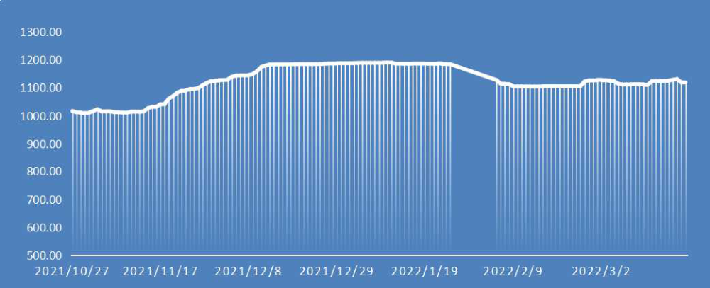 3月22日,新华-中国(运城)苹果价格指数报1119.35点,较上期下跌4.88点,跌幅0.43%;较基期上涨119.35点,涨幅11.94%。