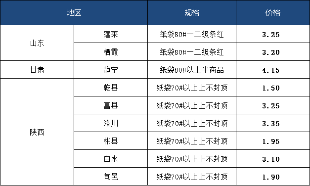 指数监测显示,截至3月22日,纸加膜80及85规格富士苹果均价为2.21元/斤,膜袋80及85规格富士苹果均价为1.23元/斤,纸袋75规格富士苹果均价为3.00元/斤,纸袋80及85规格富士苹果均价为3.27元/斤。