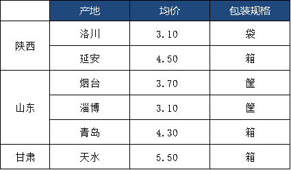 表1:运城产区各规格品均价(2022.3.16-3.22)(单位:元/斤)