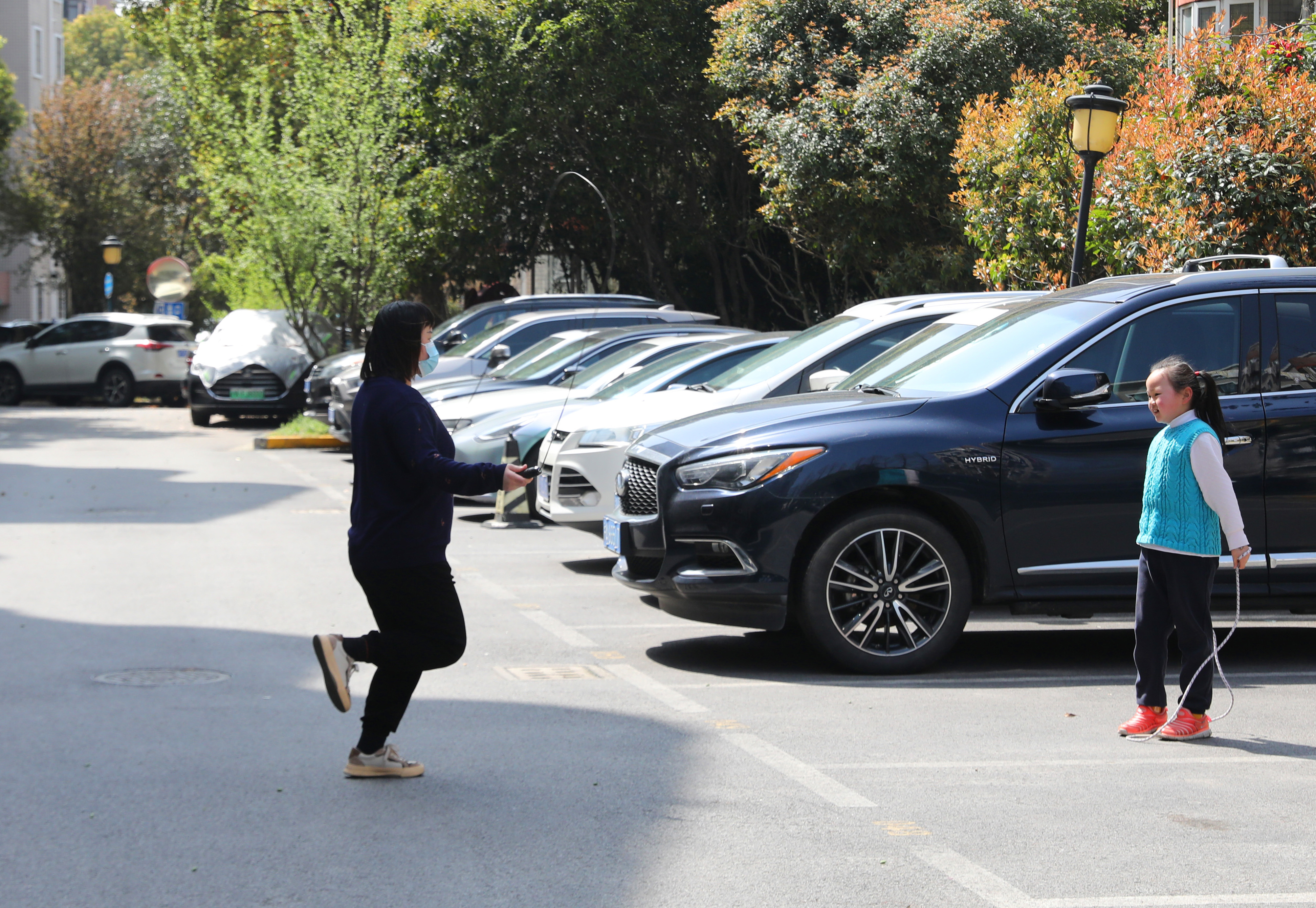 新华社照片,上海,2022年3月23日 上海:封控小区内的居民生活 3月23日,在上海闵行的一个封控小区内,一名小朋友和妈妈一起跳绳。 近日,为配合疫情防控工作顺利进行,上海市部分居民小区实行集中核酸筛查并临时封控管理。 新华社记者 方喆 摄