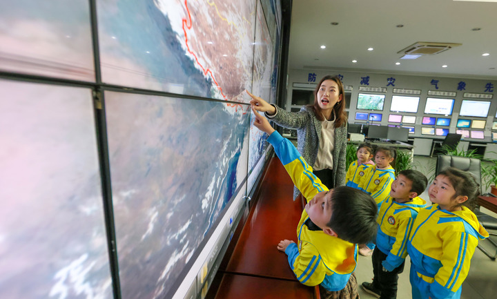 3月22日,工作人员在贵州省铜仁市玉屏侗族自治县气象局向小朋友介绍气象知识。新华社发(胡攀学 摄)