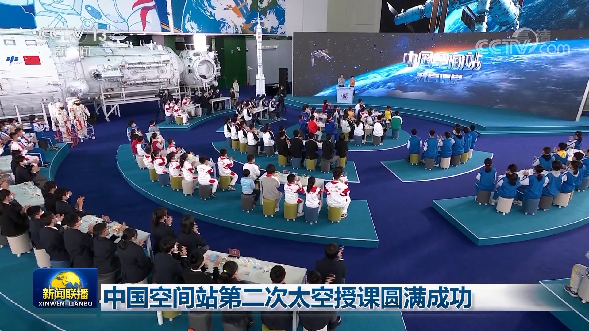 此次授课活动由中国载人航天工程办公室联合教育部、科技部、中国科协、中央广播电视总台共同主办,中国科技馆及载人航天工程相关参研参试单位提供支持。在中国科技馆设地面主课堂,在西藏拉萨、新疆乌鲁木齐设2个地面分课堂。在约45分钟的授课中,航天员生动演示微重力环境下太空“冰雪”实验、液桥演示实验、水油分离实验、太空抛物实验,深入浅出讲解实验现象背后的科学原理,同时展示了部分空间科学设施,介绍了在空间站的工作生活情况。