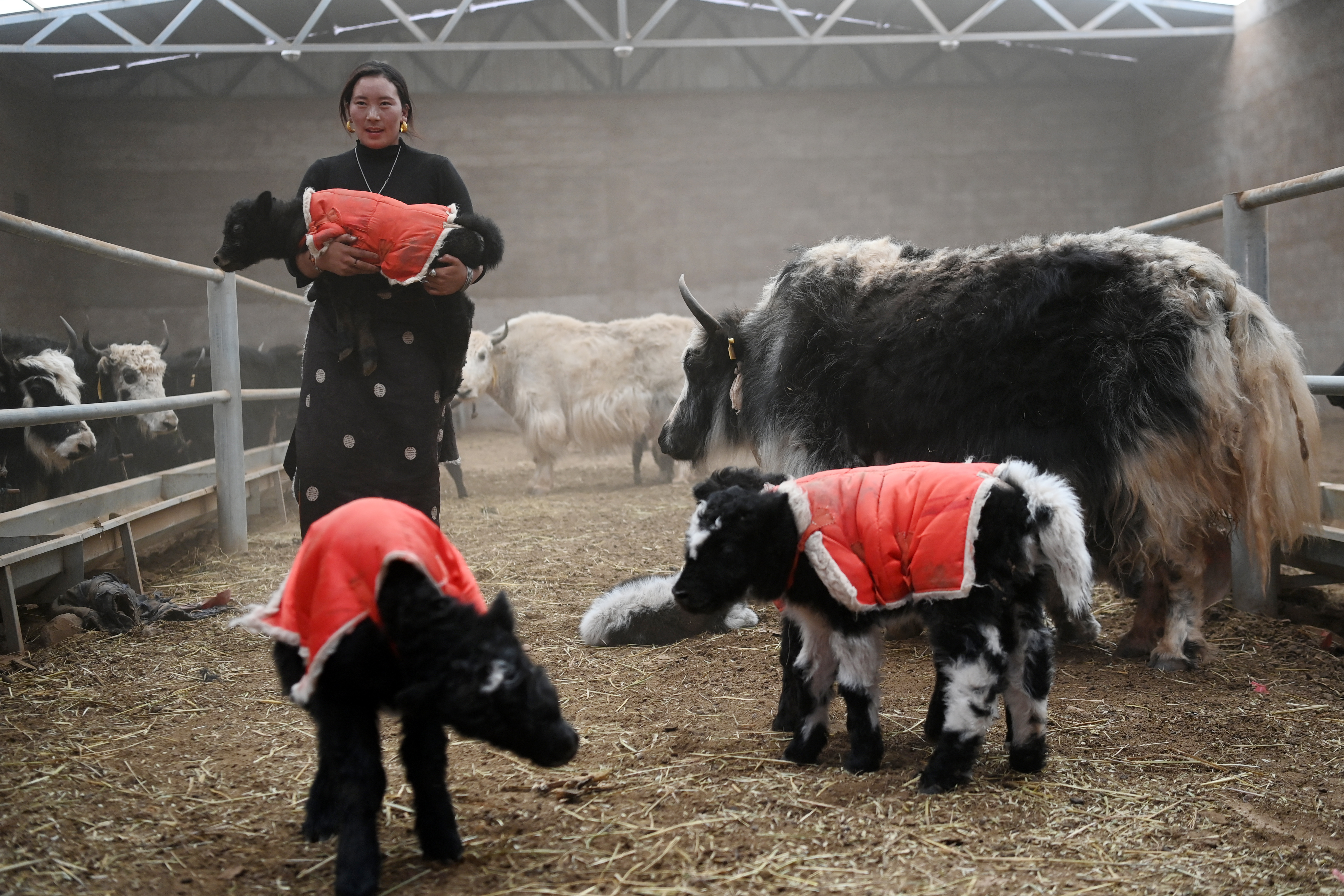 新华社照片,囊谦(青海),2022年3月23日 牦牛“宝宝”高原扎堆出生 3月23日,在囊谦县东坝乡吉诺布拉泽种植养殖农民专业合作社,牧民照顾牛犊。 近年来,青海省玉树藏族自治州囊谦县大力发展现代农牧业,建设标准化千头牦牛养殖基地19处,当地牧民将自家牦牛以入股形式放到合作社牦牛养殖基地集中养殖。随着养殖条件改善和养殖技术提高,今年以来,牦牛产仔期提前,产仔量增加,牦牛“宝宝”扎堆出生。 新华社记者 范培珅 摄
