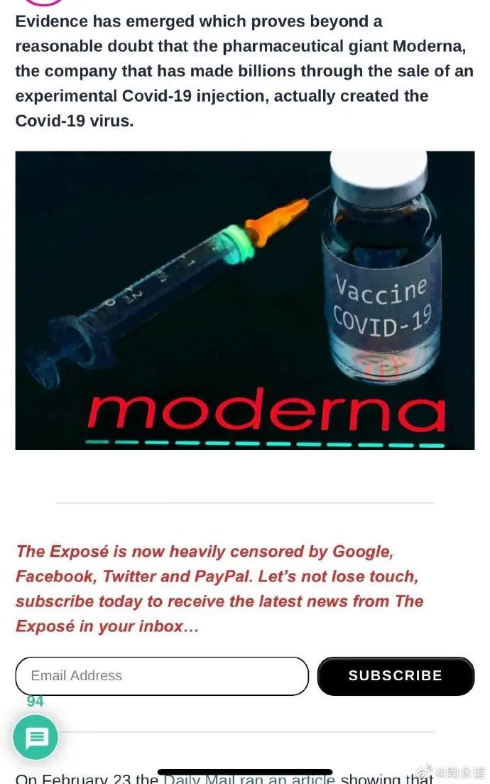 即:就是美国莫德纳公司制造了新冠病毒,简单的说就是美国制造了新冠病毒。