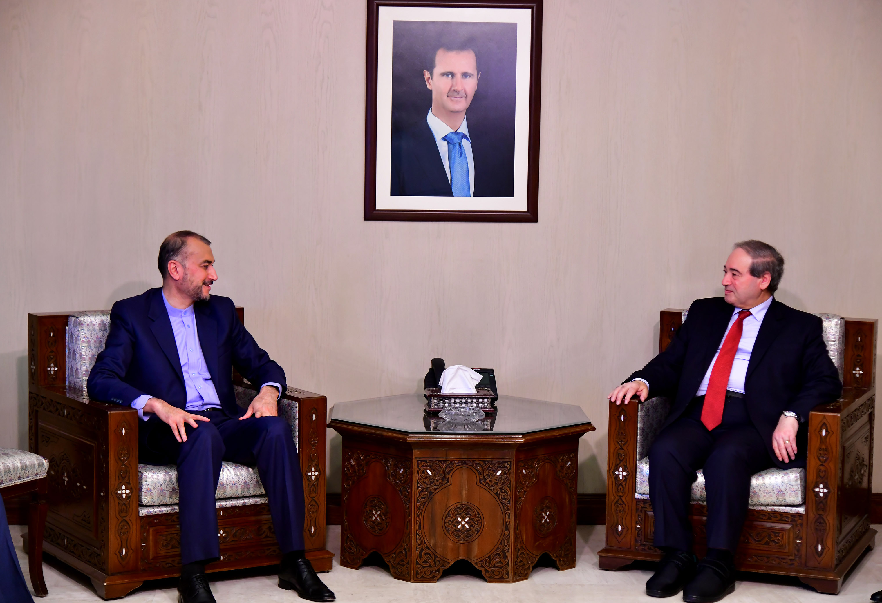 新华社照片,大马士革,2022年3月24日 (国际)(2)伊朗外长:伊核谈判已接近达成最终协议 3月23日,伊朗外长阿卜杜拉希扬(左)与叙利亚外长梅克达德在叙利亚首都大马士革举行会谈。 据叙利亚通讯社报道,伊朗外长阿卜杜拉希扬23日到访叙利亚,并与叙总统巴沙尔和外长梅克达德举行会谈。阿卜杜拉希扬在与梅克达德会谈时说,伊朗认为伊核谈判已接近达成最终协议,如果美国采取现实观点并实事求是对待此事,“我们准备宣布这项协议”。 新华社发(阿马尔·萨法尔贾拉尼摄)