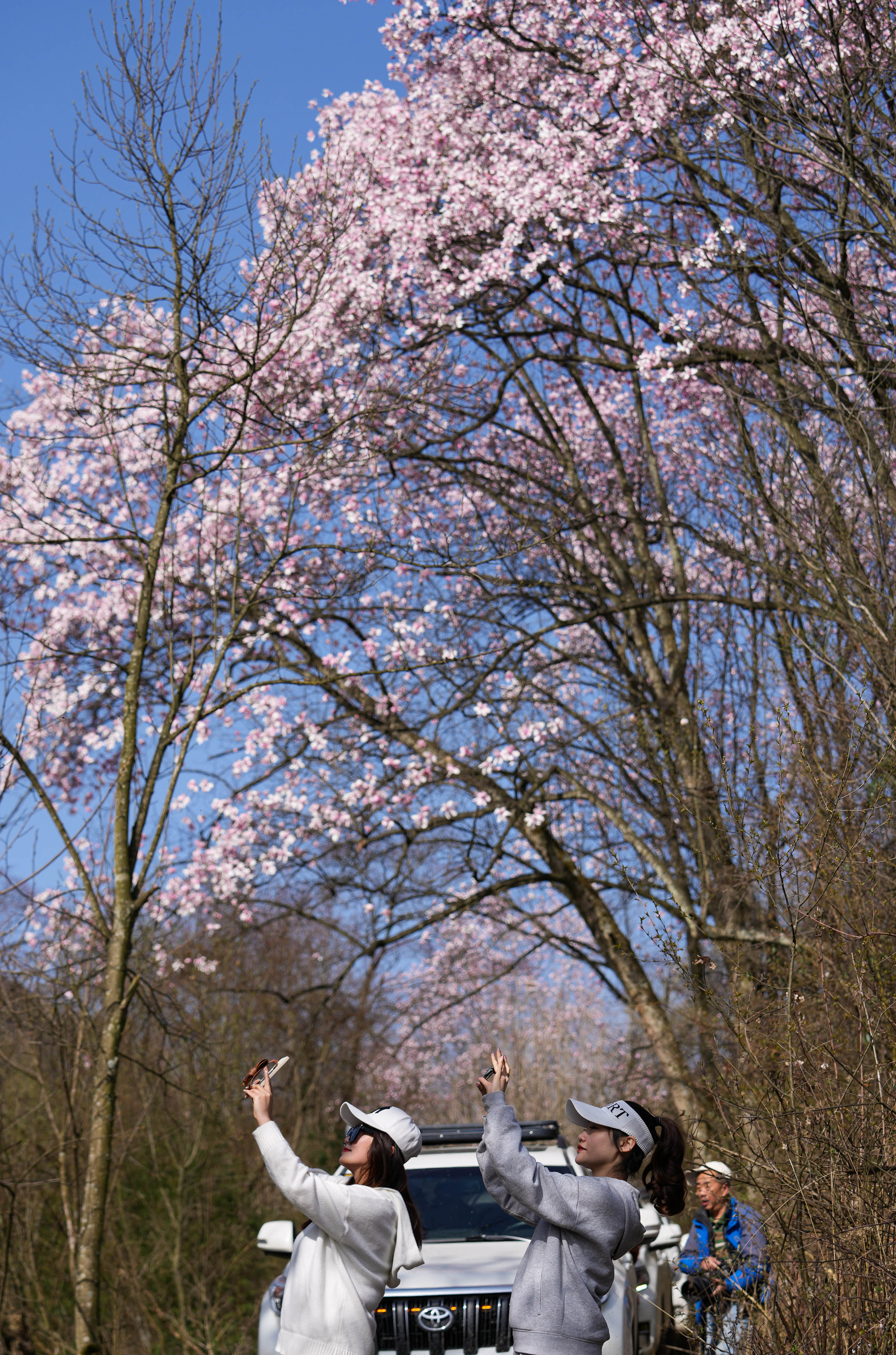 新华社照片,江油(四川),2022年3月24日 四川江油:辛夷花开 江油市大康镇戴天山村辛夷花盛开,游人在花林间拍摄(3月23日摄)。 目前正是四川省江油市大康镇戴天山村的辛夷花盛开的季节。这里的辛夷花在群山环抱中绵延数十里,呈现出一派世外桃源的景象,吸引游人前来踏青赏花。当地的农家乐旅游接待、土特产销售等“花经济”,促进了村民们增产增收。 新华社记者 江宏景 摄