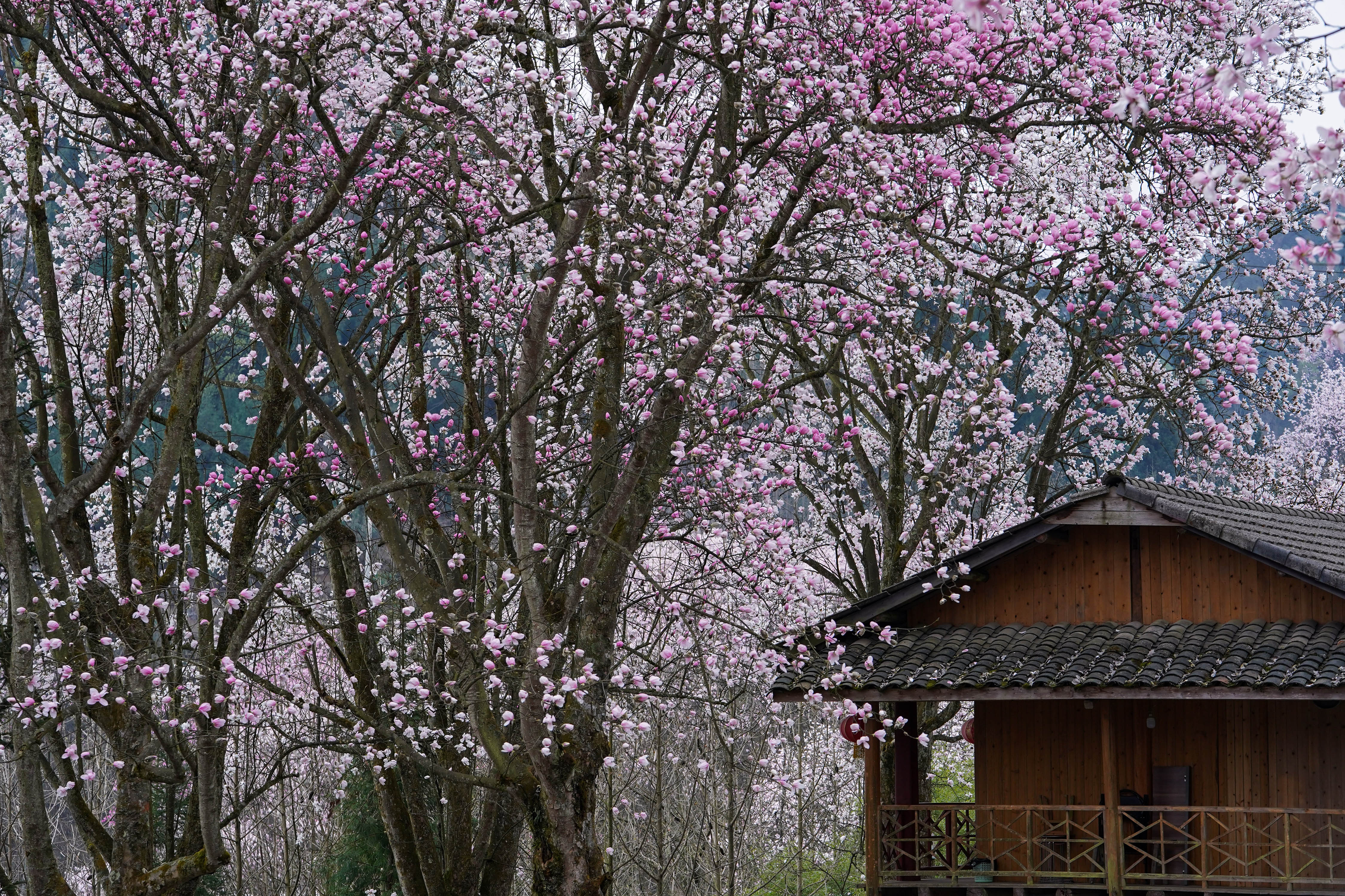新华社照片,江油(四川),2022年3月24日 四川江油:辛夷花开 江油市大康镇戴天山村辛夷花盛开,花林农舍相映成景(3月22日摄)。 目前正是四川省江油市大康镇戴天山村的辛夷花盛开的季节。这里的辛夷花在群山环抱中绵延数十里,呈现出一派世外桃源的景象,吸引游人前来踏青赏花。当地的农家乐旅游接待、土特产销售等“花经济”,促进了村民们增产增收。 新华社记者 江宏景 摄