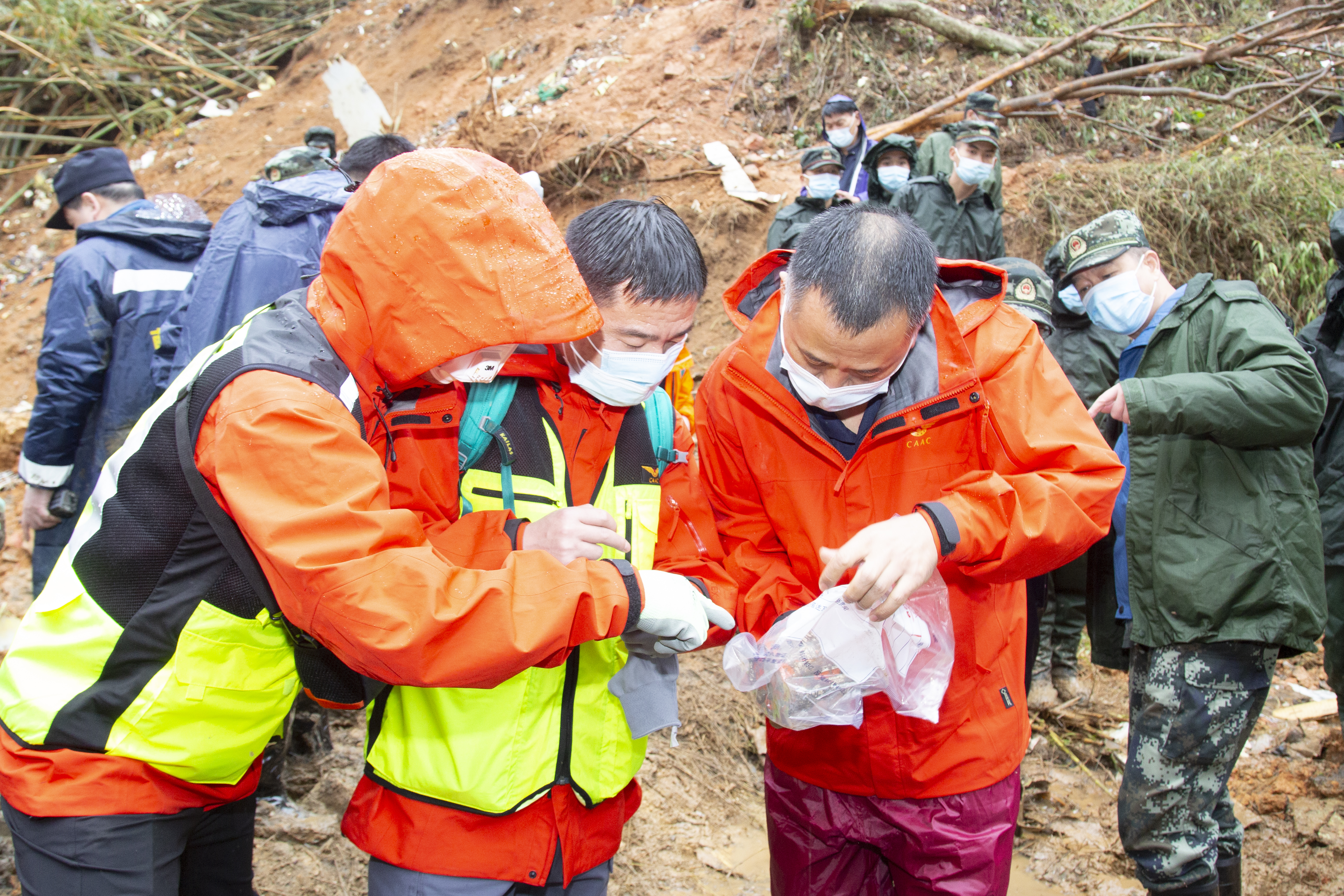 新华社照片,藤县(广西),2022年3月24日 东航坠毁客机的一部黑匣子找到了 3月23日,在广西梧州藤县东航MU5735航班坠机事故现场核心区,民航专家现场检测确认黑匣子。 3月23日,民航事故调查中心宣布,当日16时许,在广西藤县埌南镇莫埌村坠机事故现场,搜救人员发现了MU5735航班的一部黑匣子。 3月21日14时38分许,东方航空公司MU5735航班执行昆明-广州任务时,在广西梧州市上空失联并坠毁。武警广西总队立即启动应急响应机制,派出官兵火速赶赴坠机现场,展开紧急搜救。 新华社发(郑炳镇 摄)